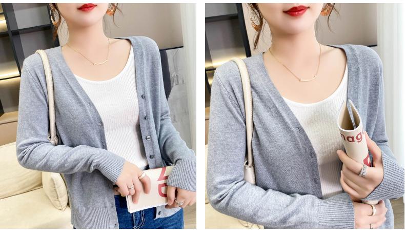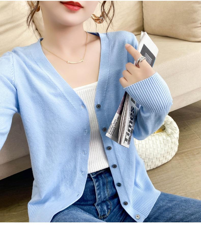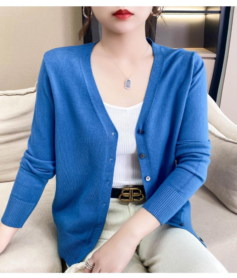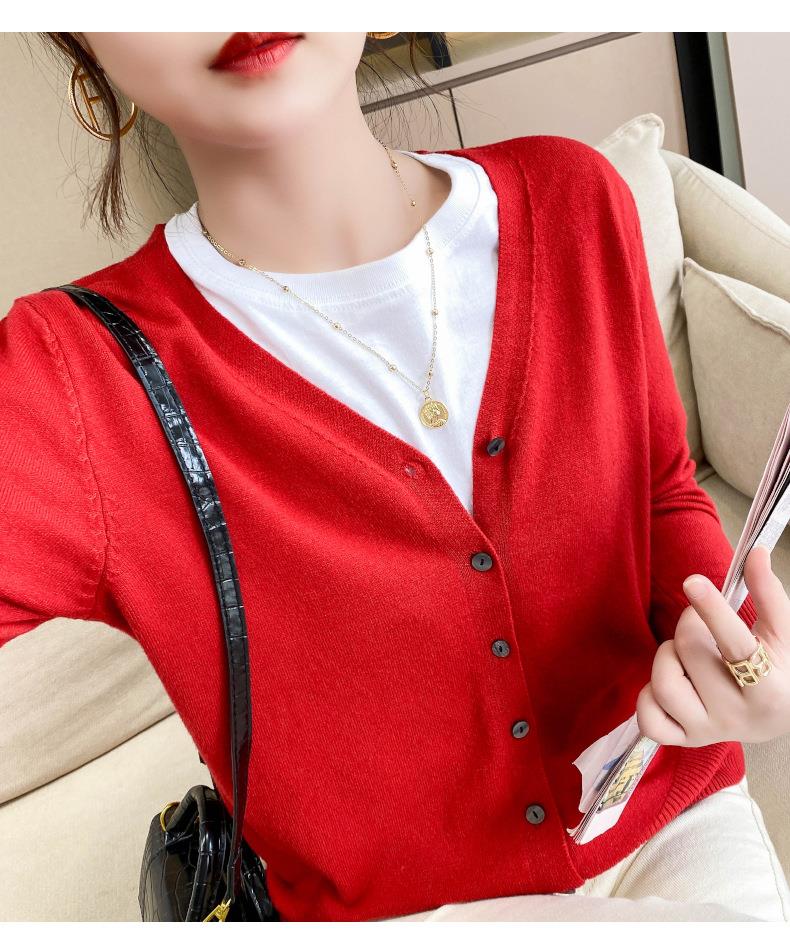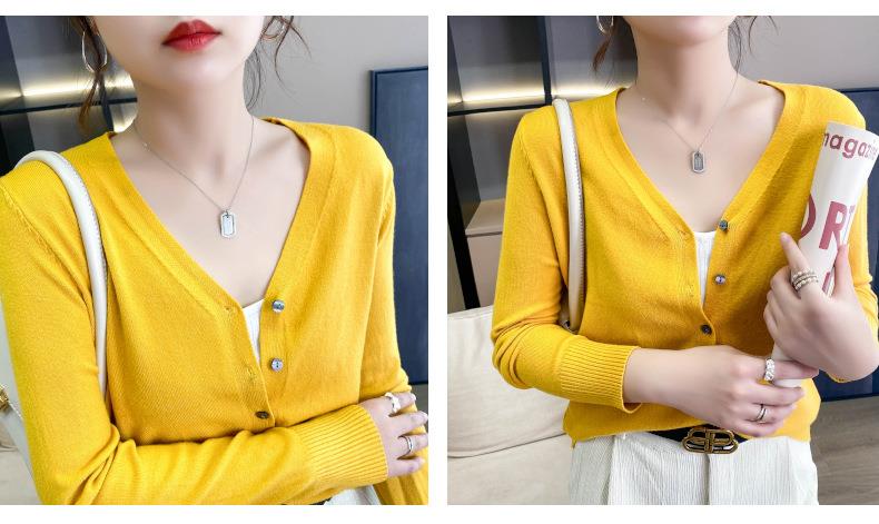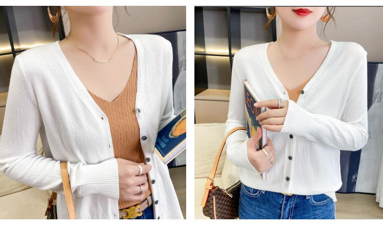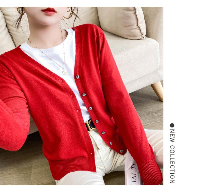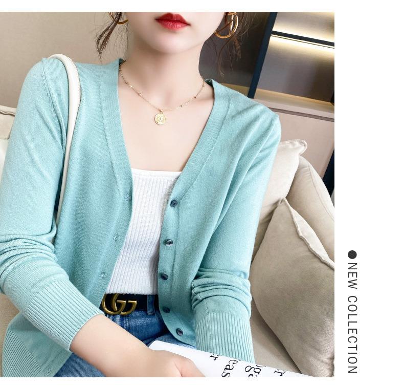 新款2023春季OL气质针织开衫V字领直筒型毛衣女式针织衫