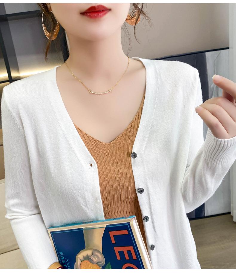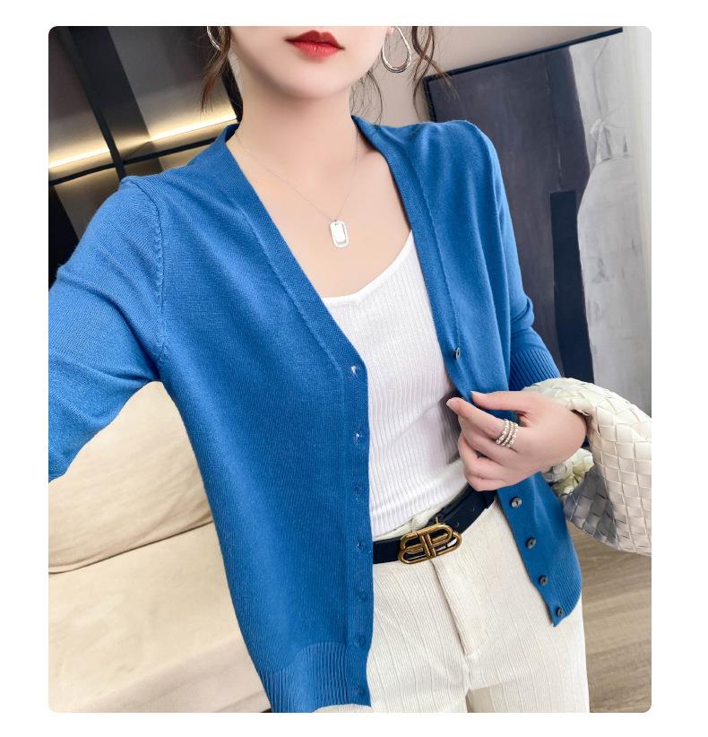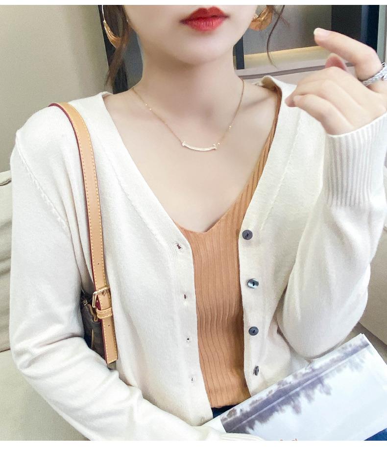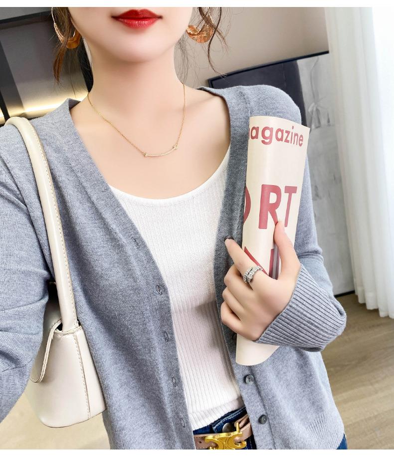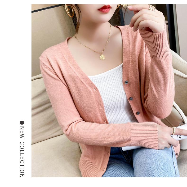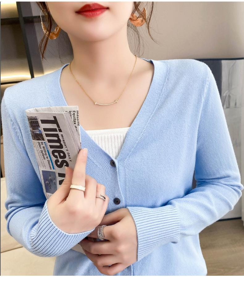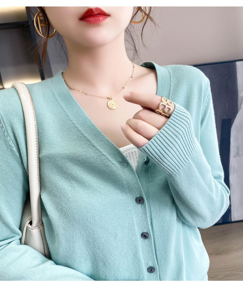 新款2023春季OL气质针织开衫V字领直筒型毛衣女式针织衫