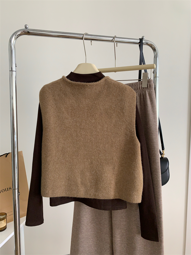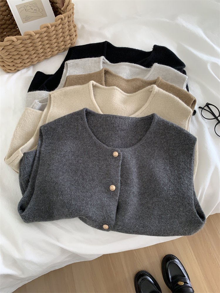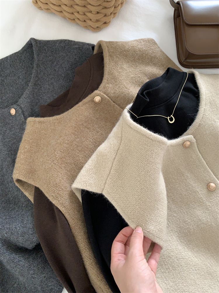 法式复古小金扣圆领针织马甲 宽松韩系百搭温柔显瘦秋冬叠穿毛衣