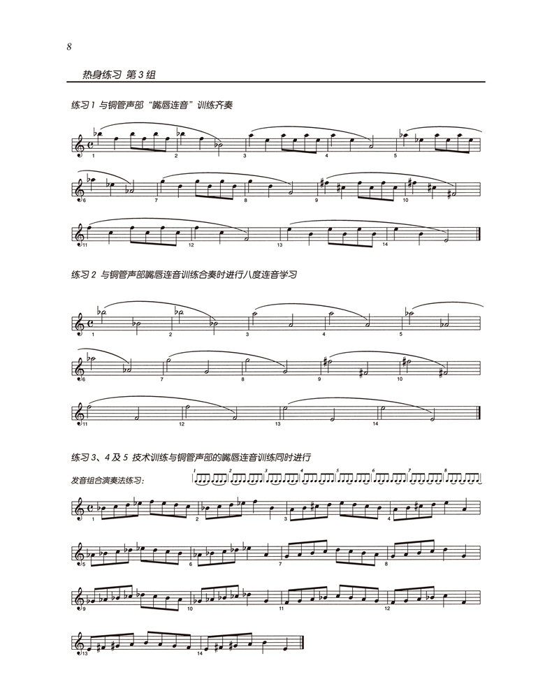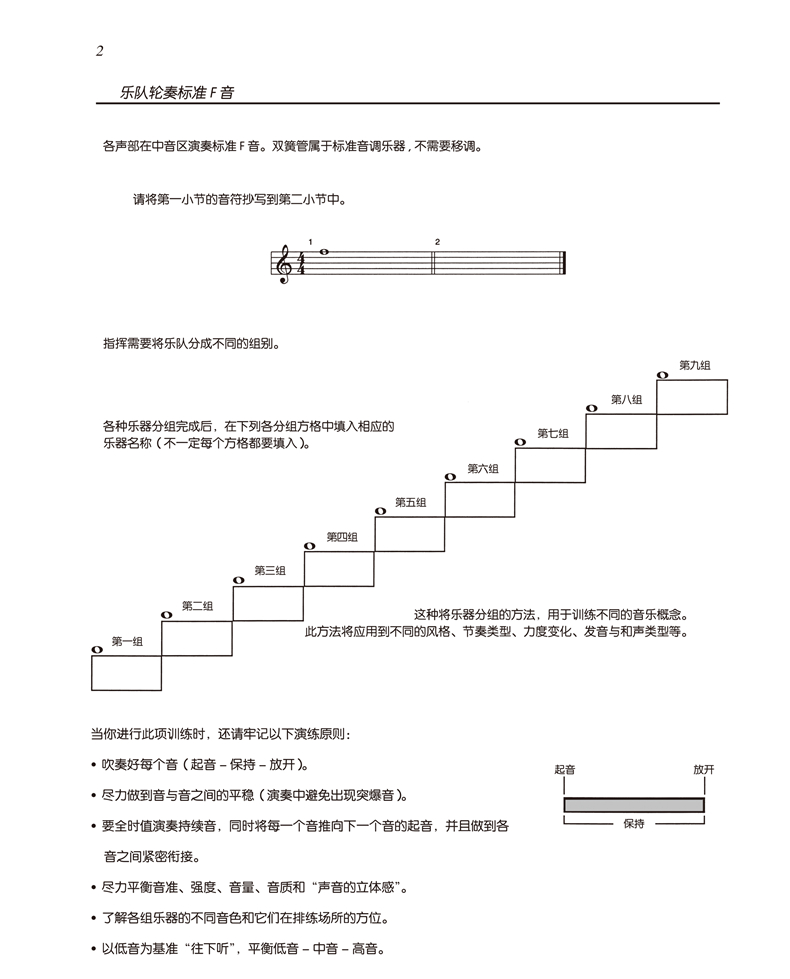 《管乐队标准化热身训练教程》旨在更好地组织日常排练和改进整个乐队的全面演奏水平。无论每天的排练时间仅5分钟,或是每天45分钟,这套教程能为处于任何水平、任何条件和状态的乐队提供机动性良好的排练选择,同时也能为广大乐队指挥们提供能适应每个学生的不同演奏水平的训练素材,并能很好的激励每一个学生为了掌握更高水平的演奏技能而努力训练。《管乐队标准化热身训练教程》共17册,分为长笛、双簧管、大管、单簧管、低音单簧管、高音单簧管、中音萨克斯管、高音萨克斯管、次中音萨克斯管、小号、圆号、长号、次中音号(高音谱号)、次中音号(低音谱号)、大管、打击乐与总谱。