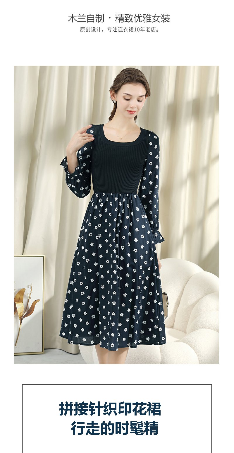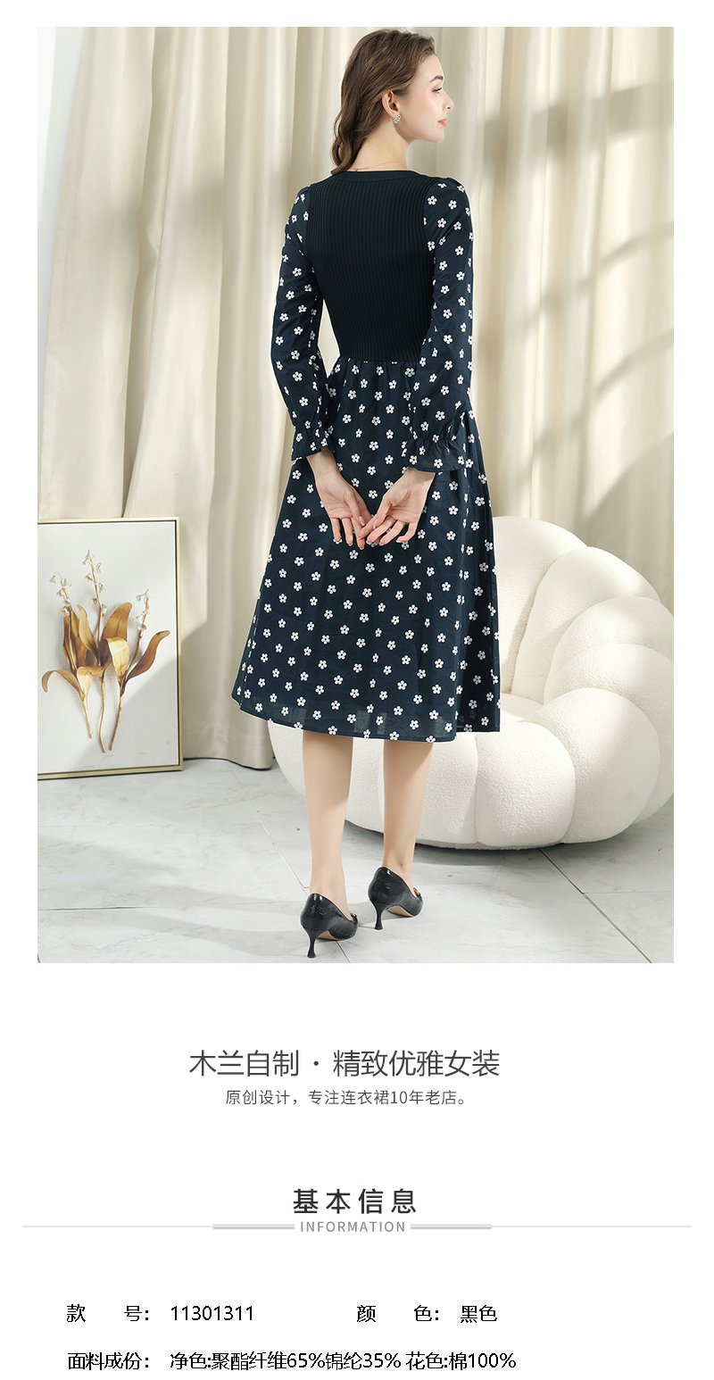 未风黑色针织棉布连衣裙女春2024春季新款女装气质显瘦假两件裙子