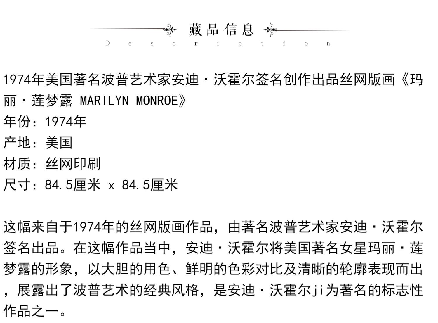 独角鹿西洋古董波普艺术家安迪·沃霍尔丝网版画《玛丽·莲梦露》