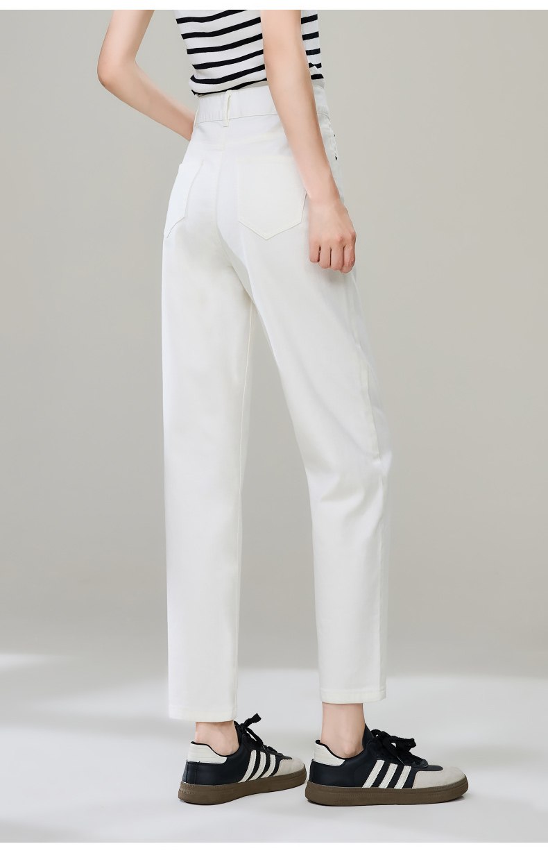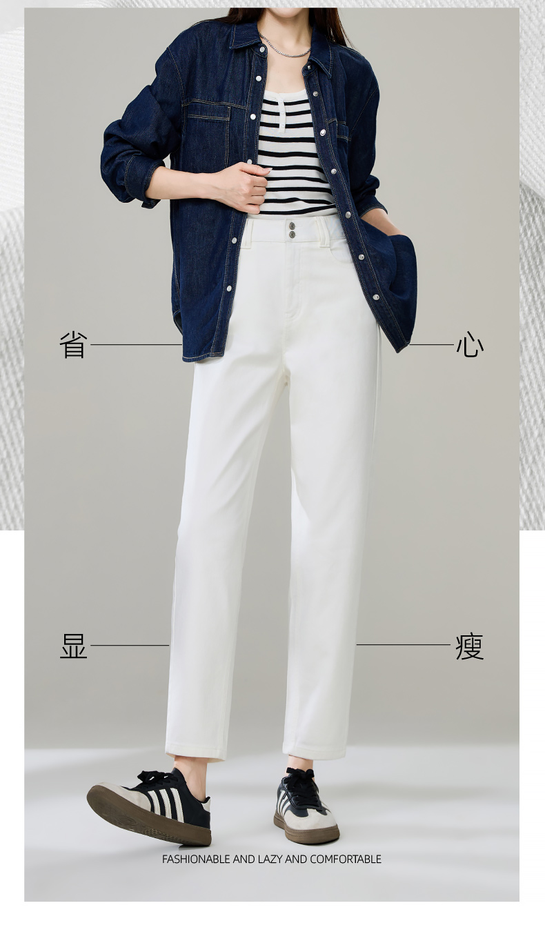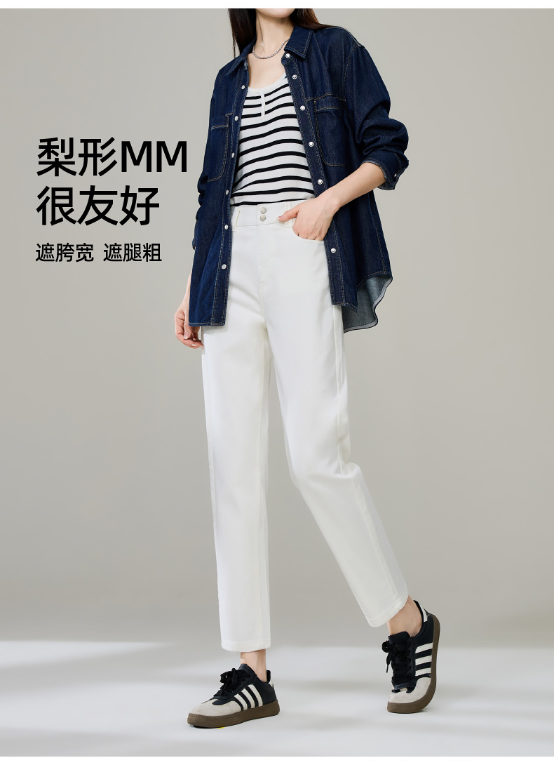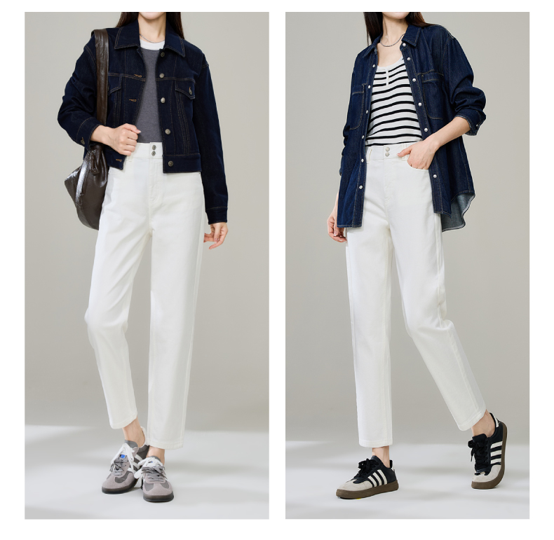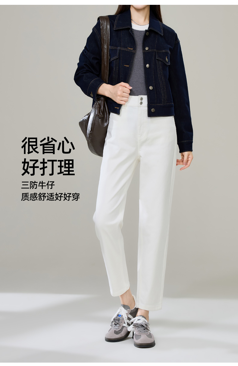 【春新品!三防-白色-老爹裤】逸阳春季新款宽松高腰显瘦梨形哈伦萝卜牛仔裤5563