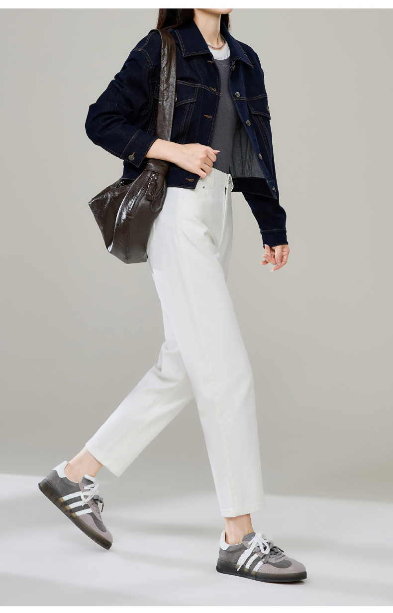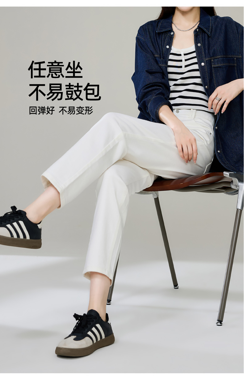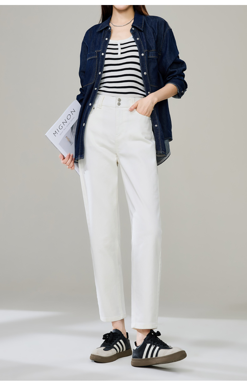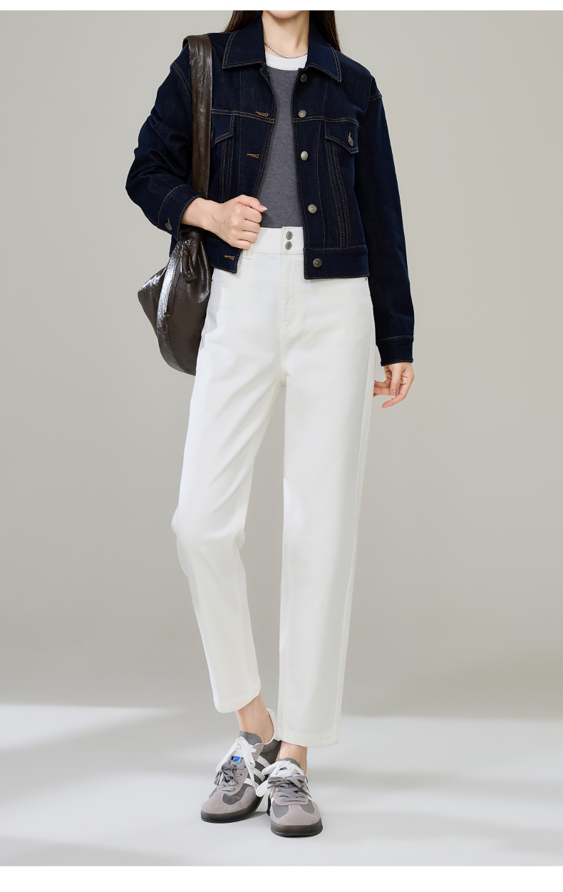 【春新品!三防-白色-老爹裤】逸阳春季新款宽松高腰显瘦梨形哈伦萝卜牛仔裤5563