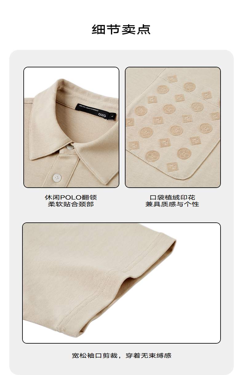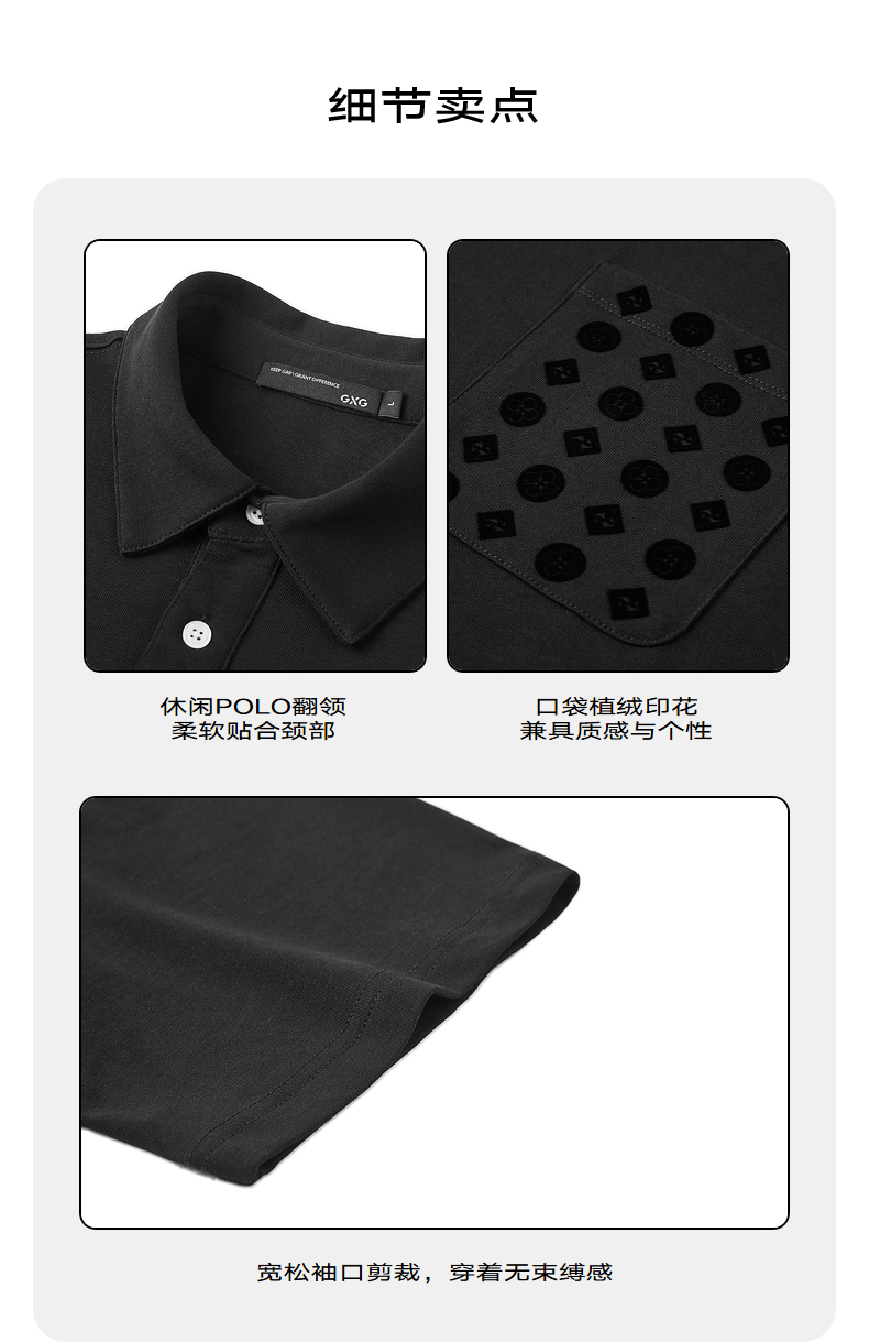 GXG男装 2024年夏季热卖植绒印花宽松休闲翻领polo衫男短袖