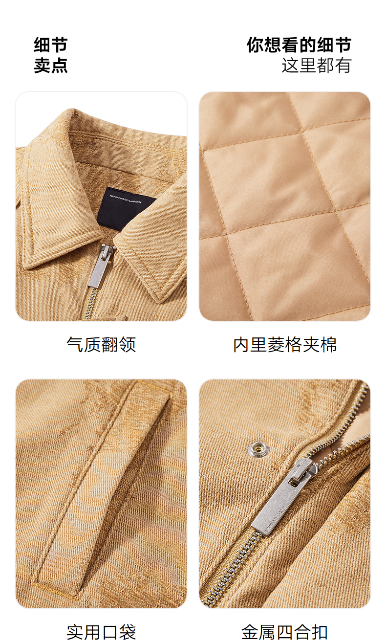 【夹棉】GXG男装 绒感牛仔夹棉夹克男通勤轻薄外套 24年冬季热卖