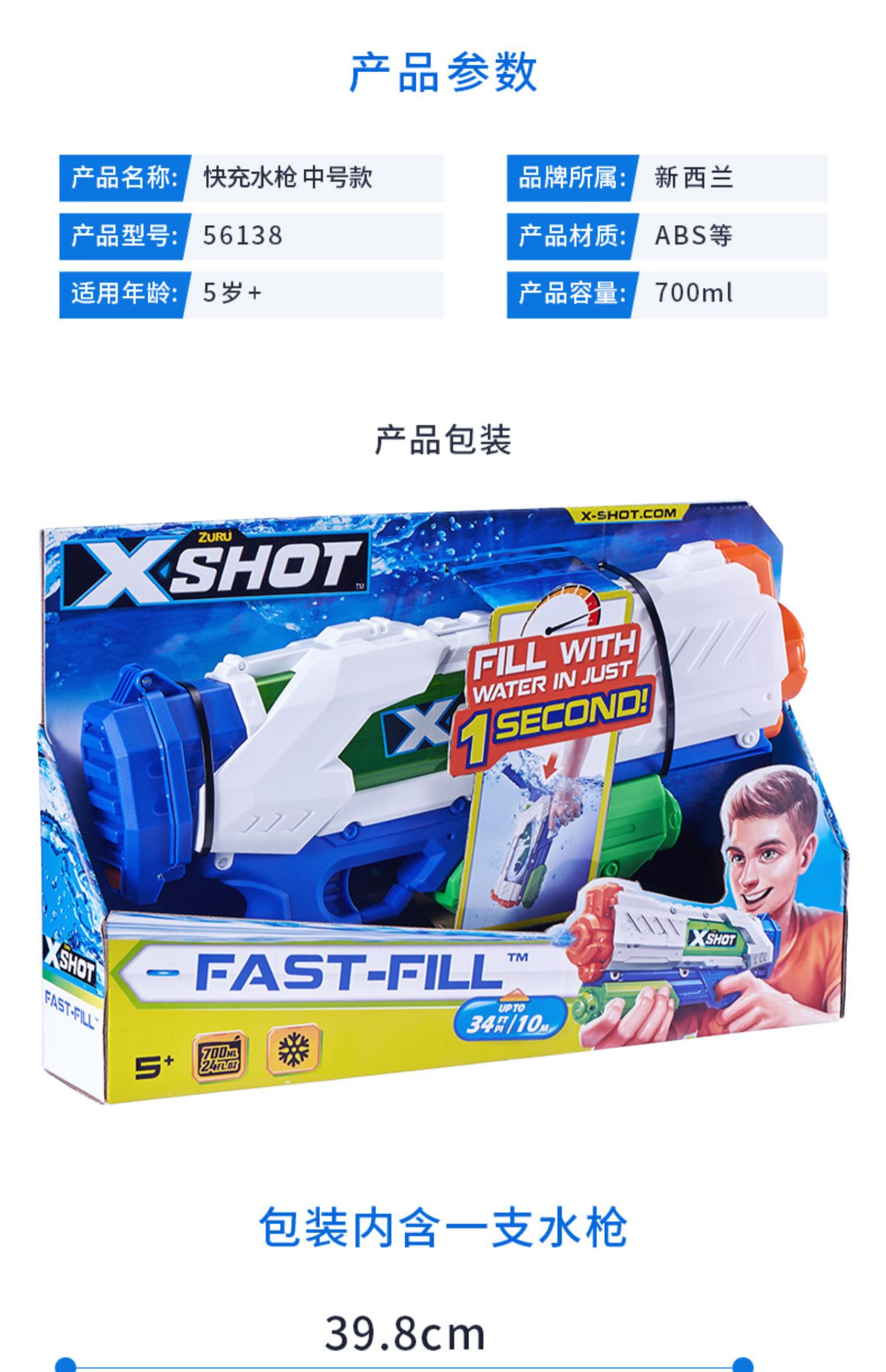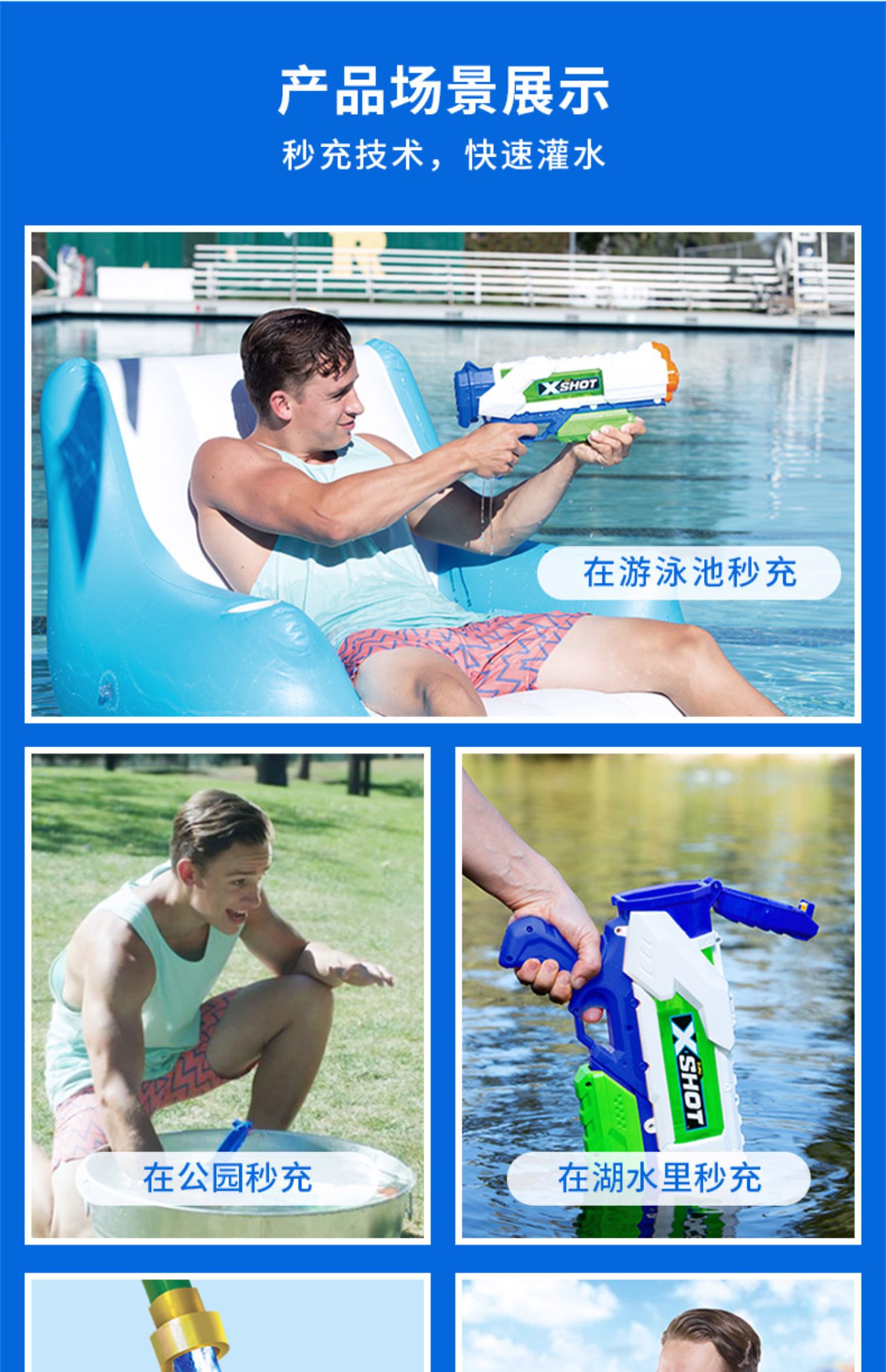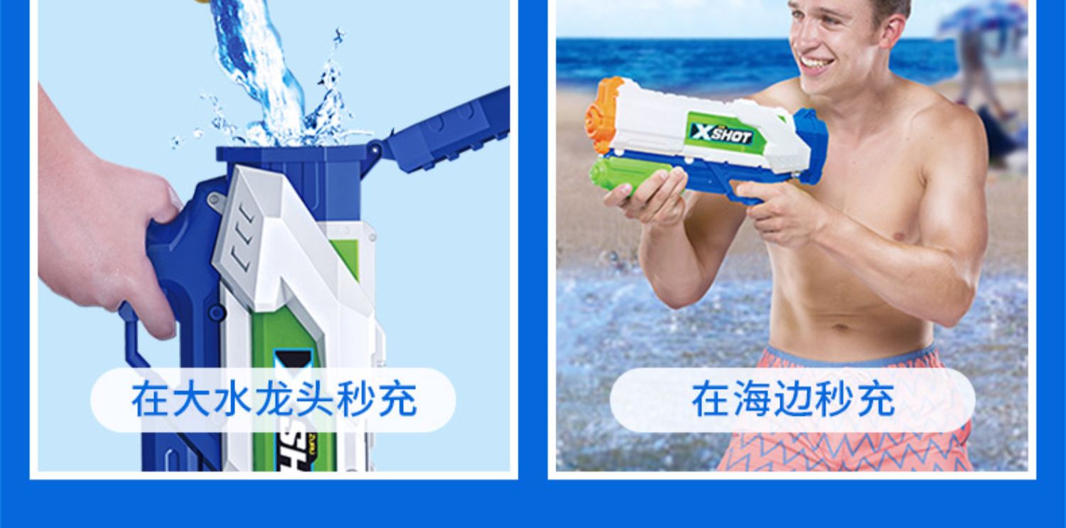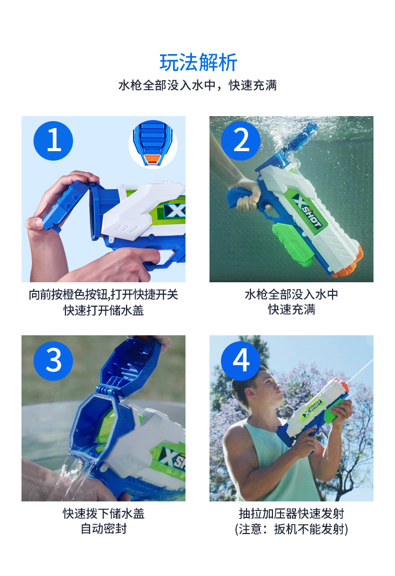 ZURU水枪 Xshot快充巨浪吞食者特攻潜行者秒充高压滋水枪儿童玩具
