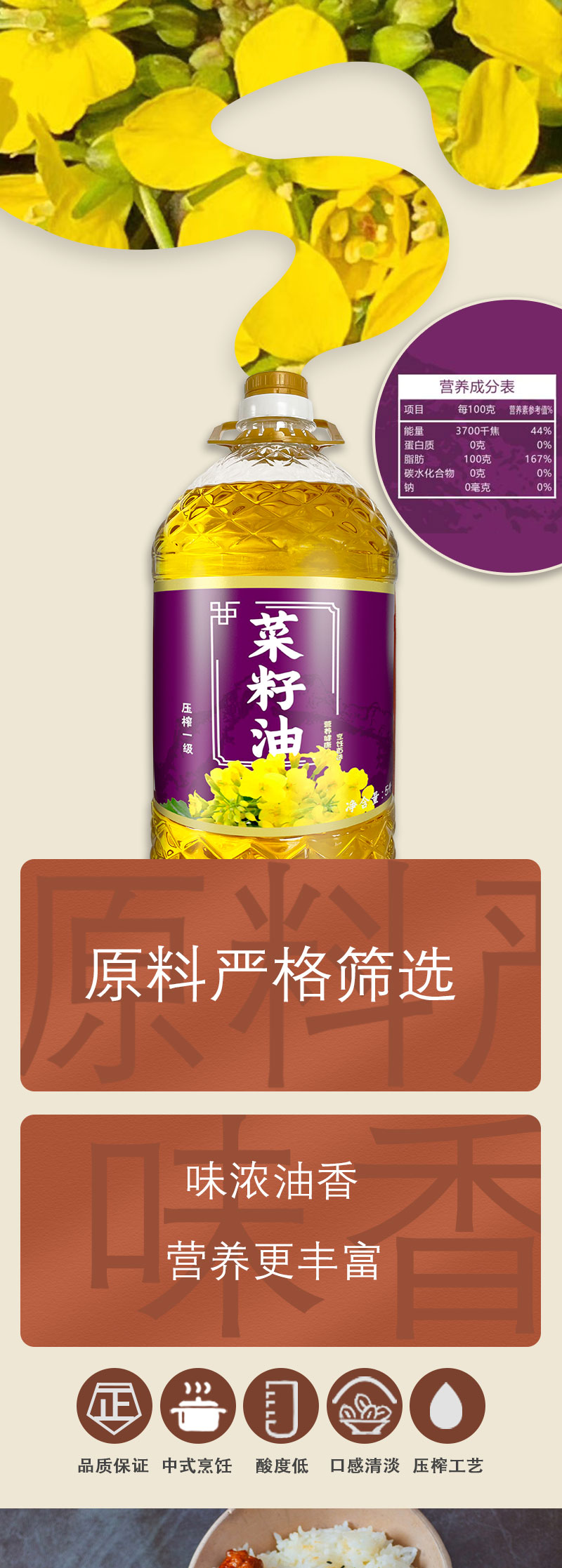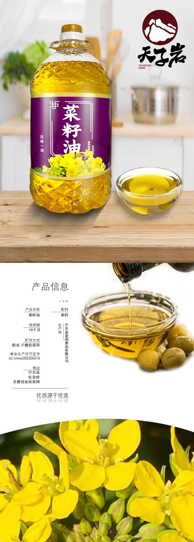 【物理压榨浓香 一级标准 家用大桶装 煎炸炒拌皆宜】天子岩一级菜籽油5L