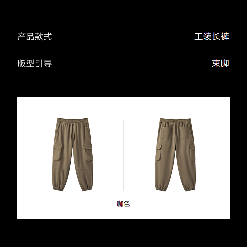 gxg.jeans男装 咖色口袋设计宽松束脚工装休闲长裤男 25冬新品