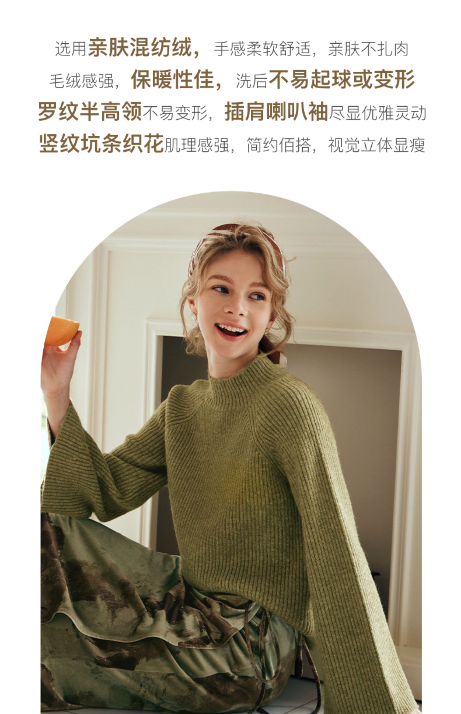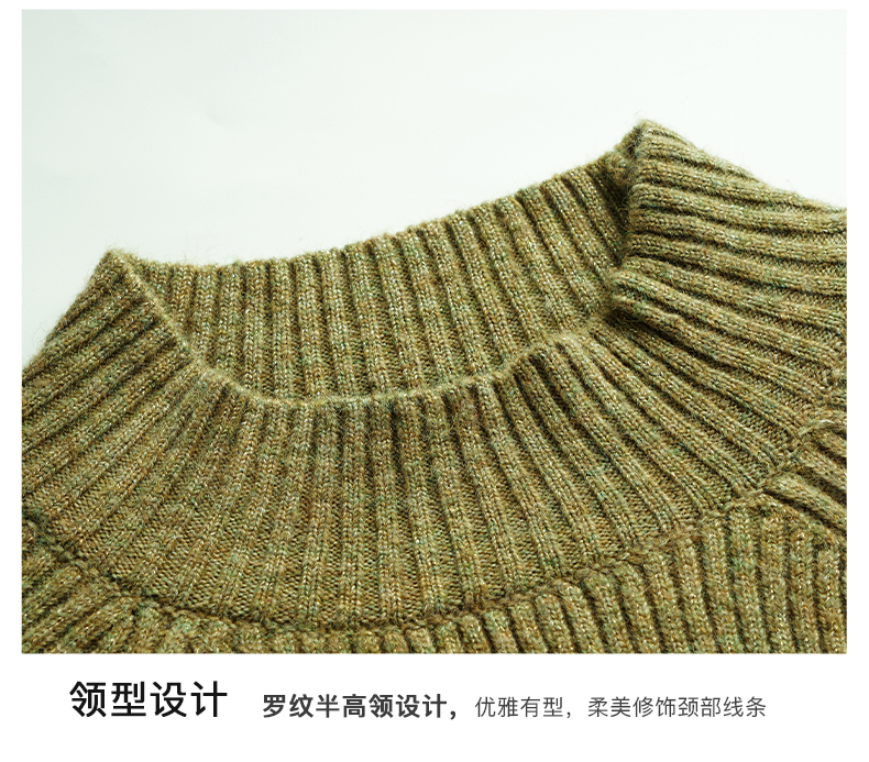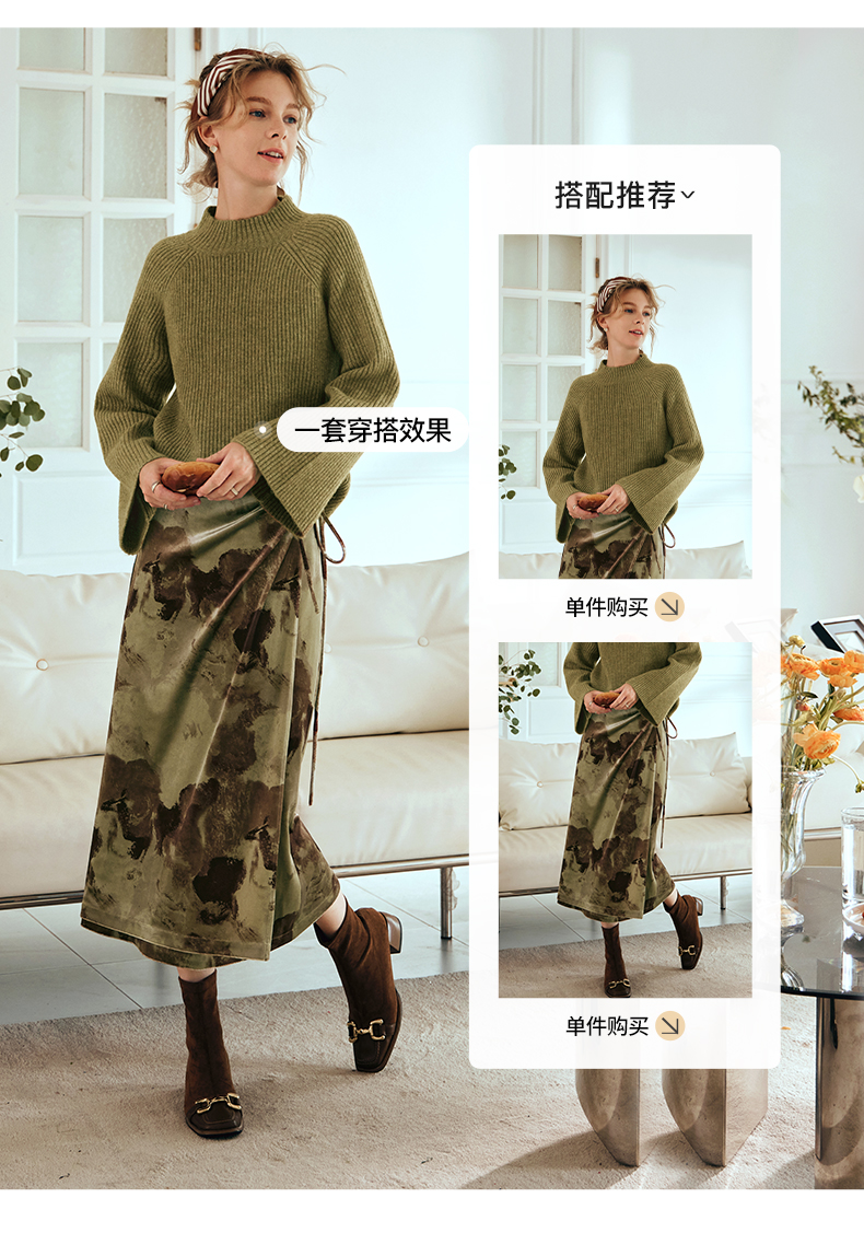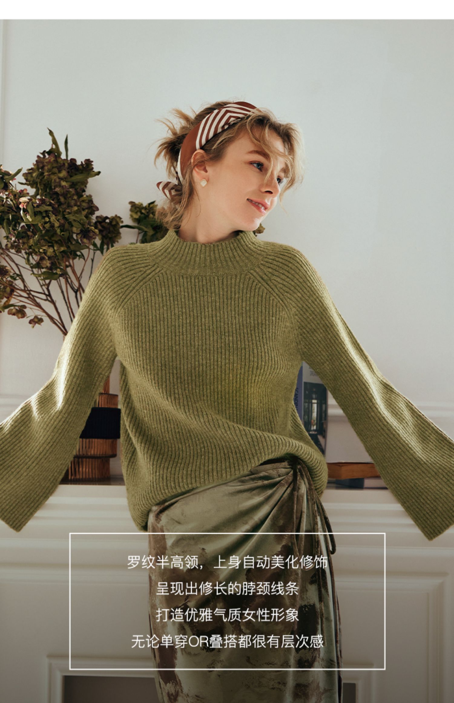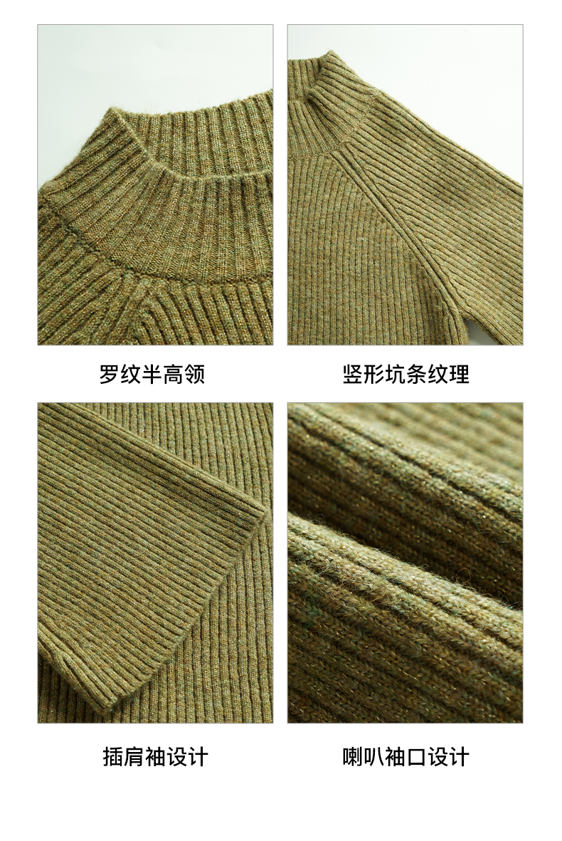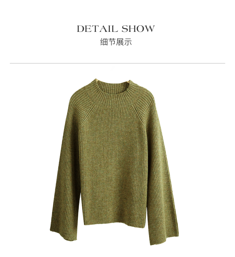 OLrain欧芮儿橄榄绿毛衣女秋冬2023年新款喇叭袖针织保暖套头衫