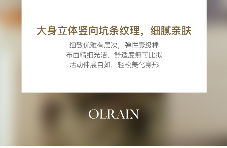 - “精致”是欧芮儿olrain品牌文化的核心,欧芮儿认为,精致的女人,不但要外在动人,更要内在迷人,内外兼修,有魅力、有气质、有内涵,自信而不自傲,优雅而不矫揉,自有万种风情而不轻浮,更不故作矜持。