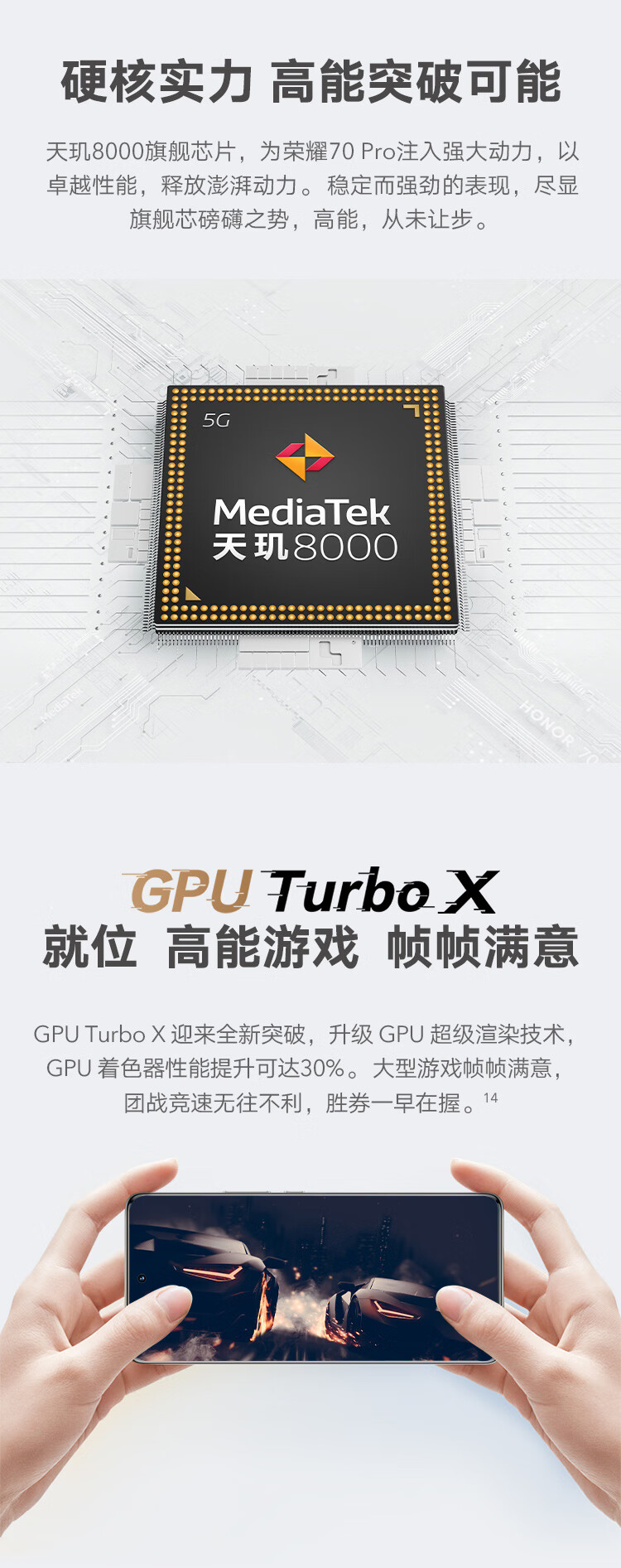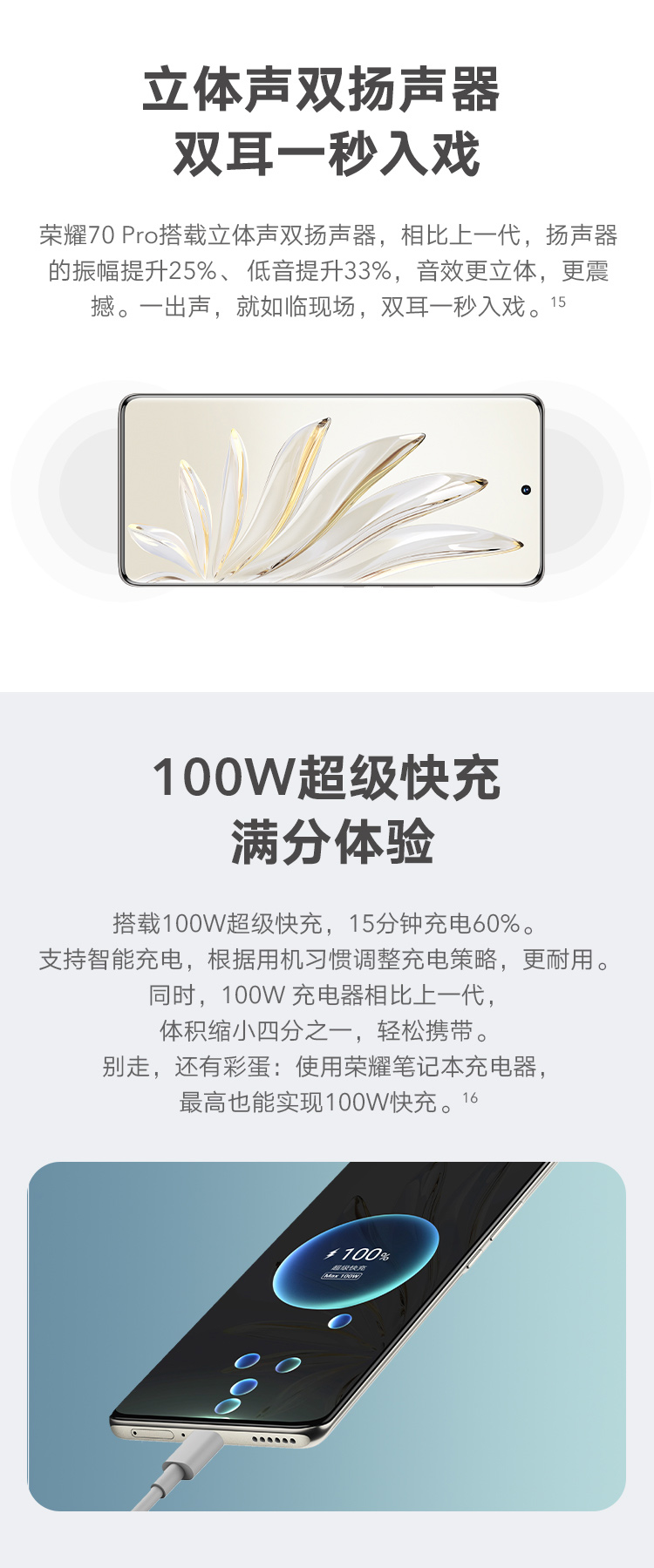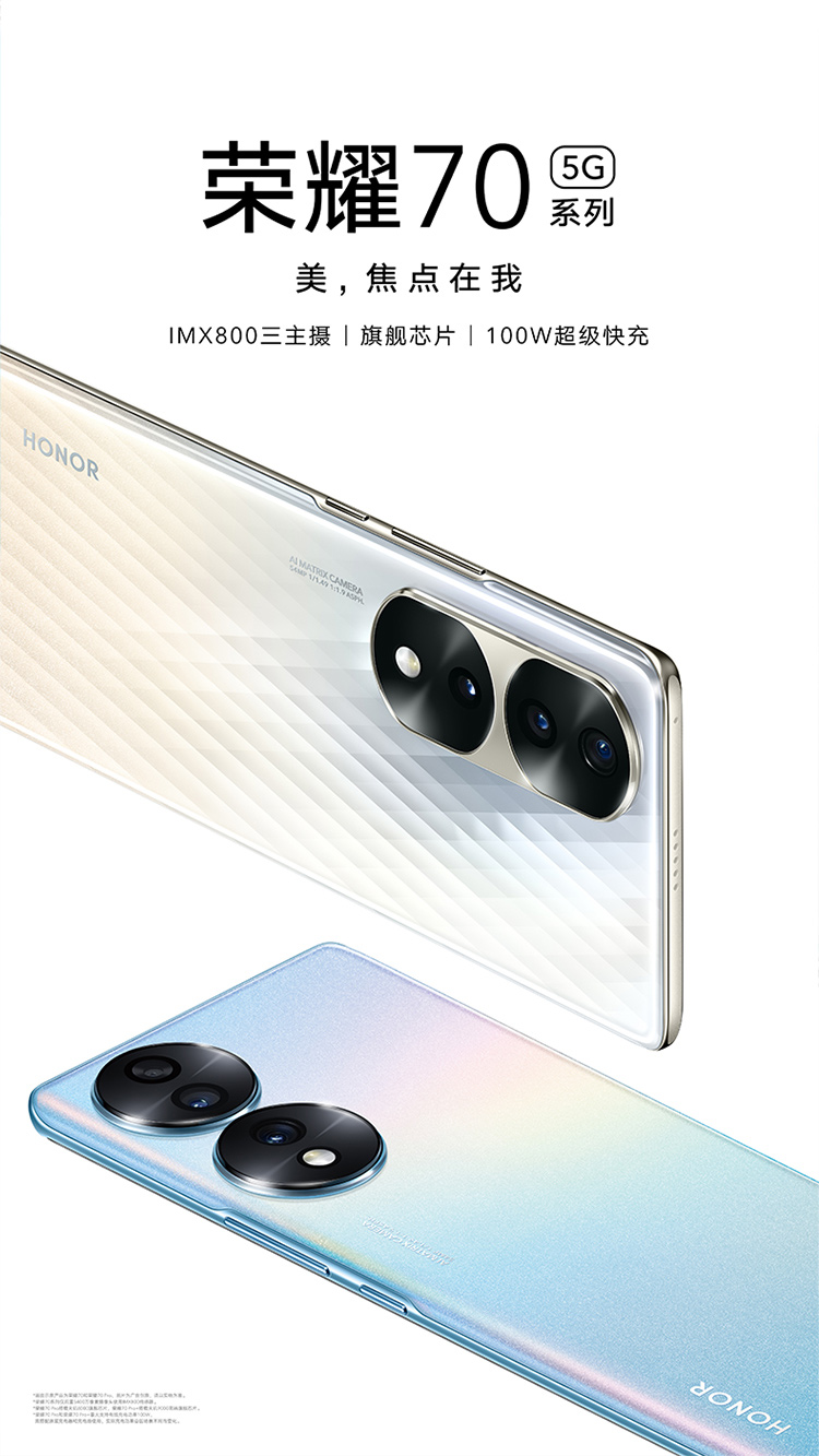 荣耀70 Pro IMX800三主摄 旗舰芯片 100W超级快充 5G手机 12GB+256GB 薄雾金沙