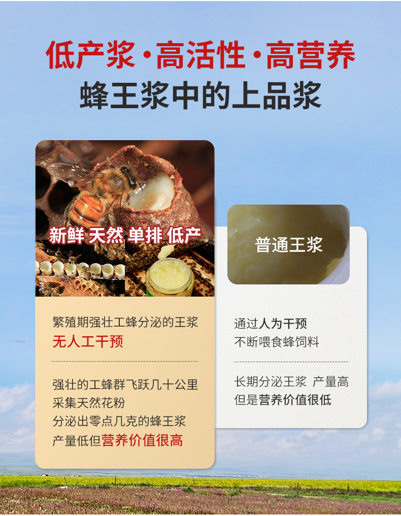 【2025新浆】田野牧蜂青藏高原头茬鲜蜂王浆新升级便携装蜂皇浆