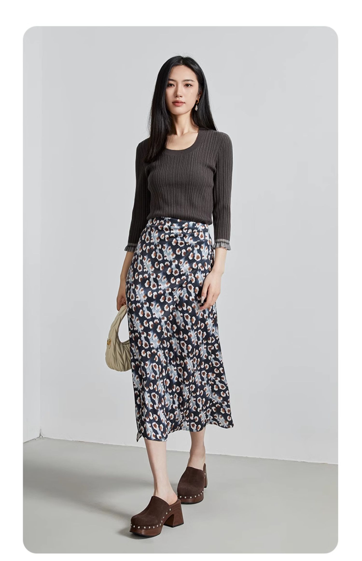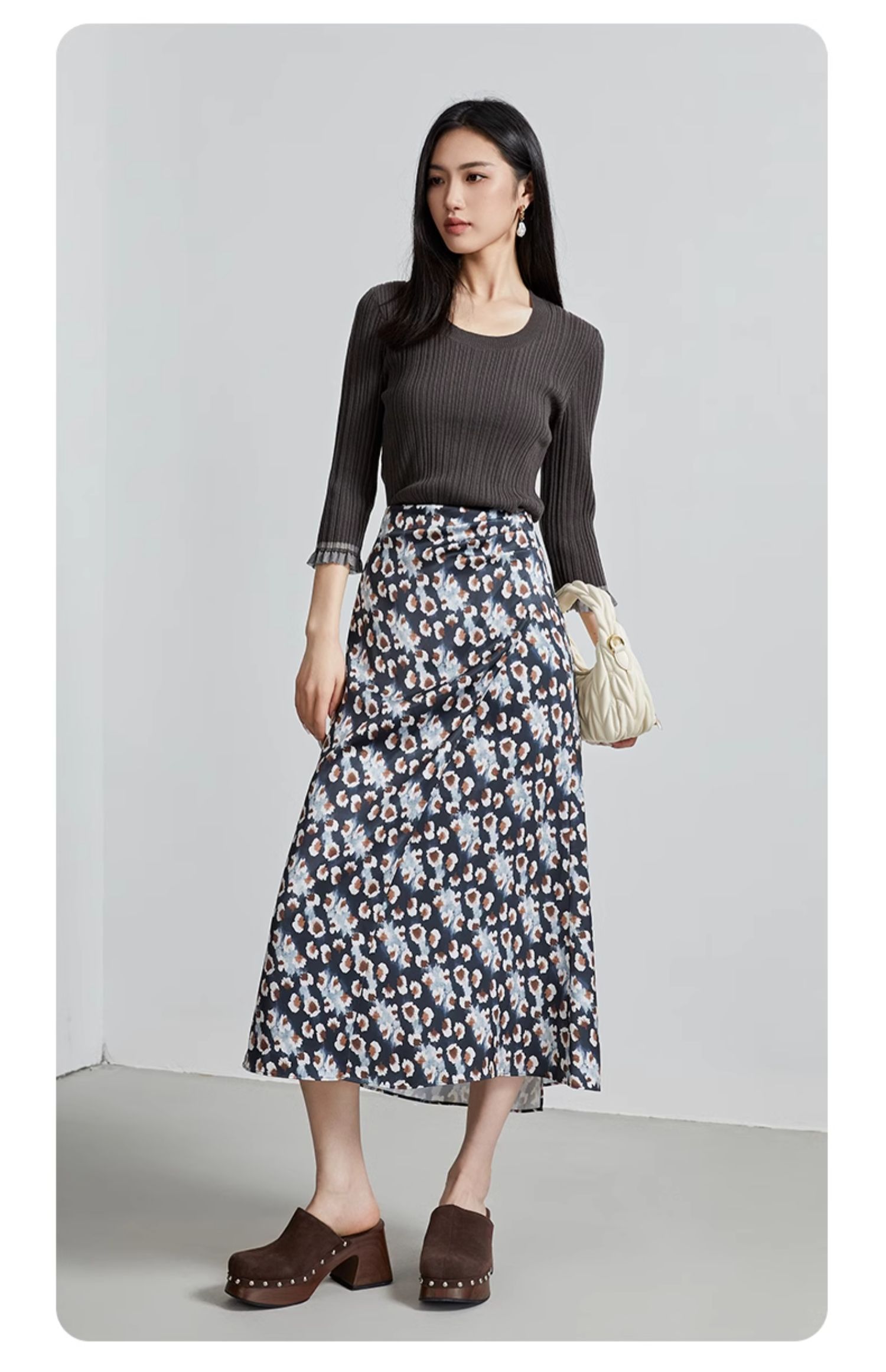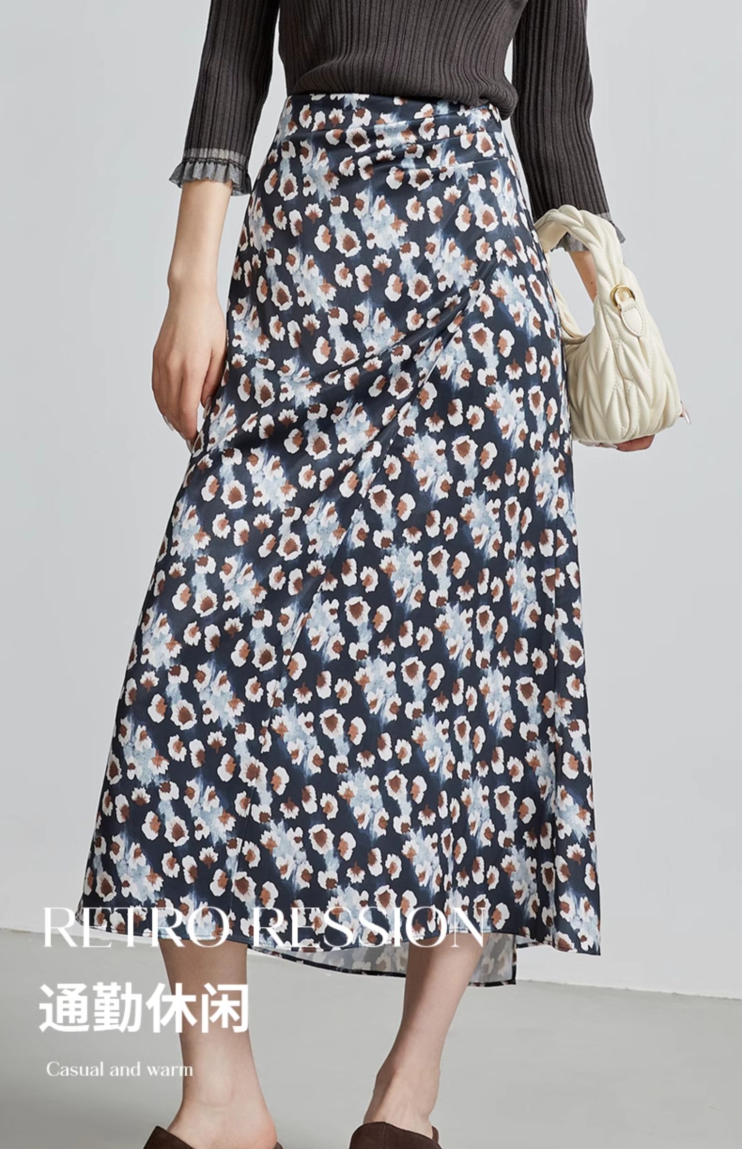 oldcolour秋季新款雪纺碎花半身裙高腰a字裙浪漫长裙女P320604A1