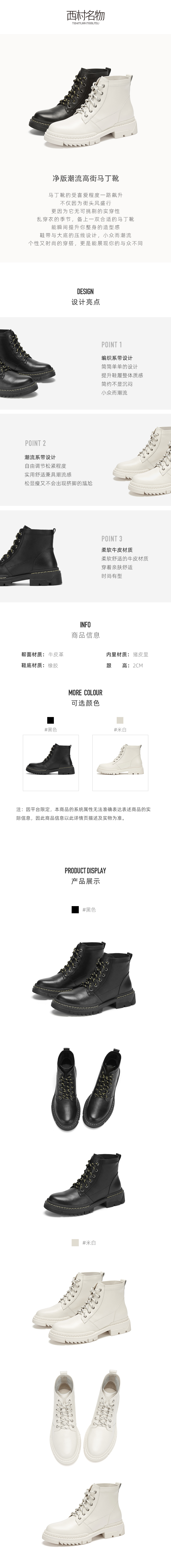 西村名物2020冬季新款短靴皮质系带低跟净版潮流高街马丁靴T20DS40941
