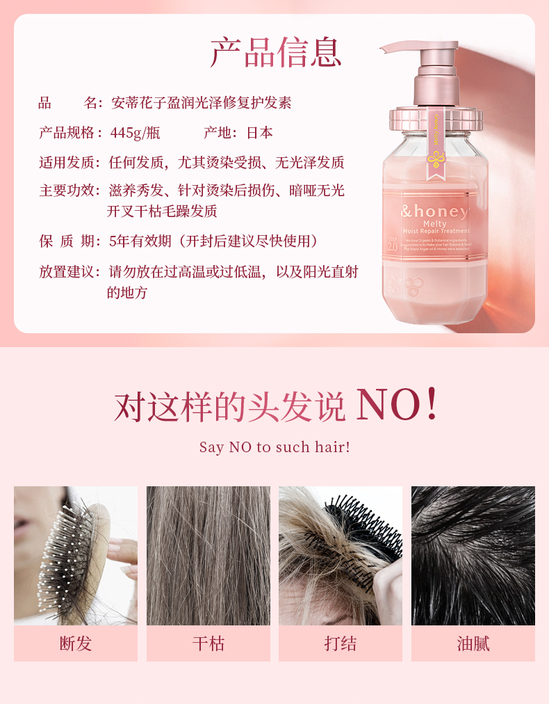 安蒂花子盈润光泽修复护发素 445g 樱花版 适合中性干性发质 针对干枯染烫受损