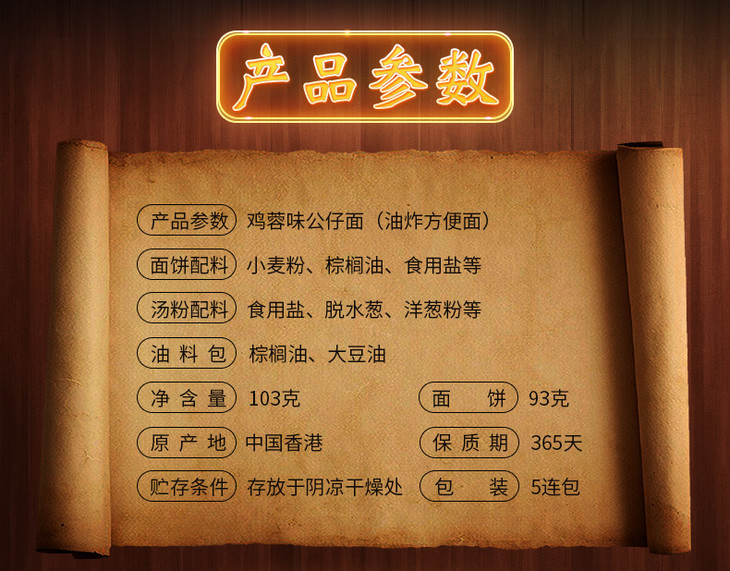 香港公仔面鸡蓉五连包103g*5