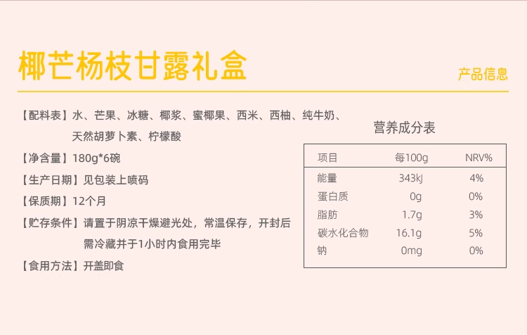 【2025.6.8】滋时椰芒杨枝甘露礼盒180g*6碗/盒