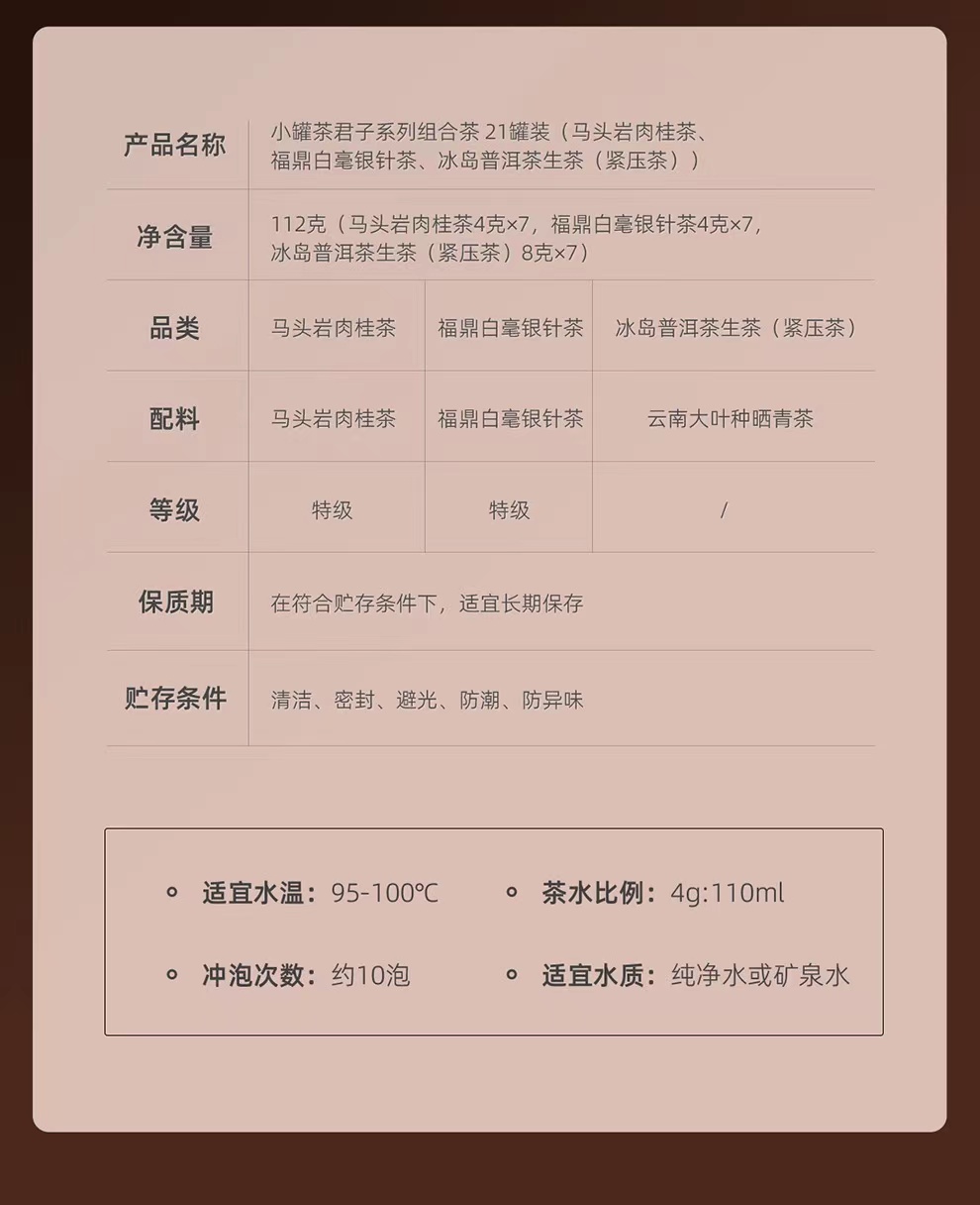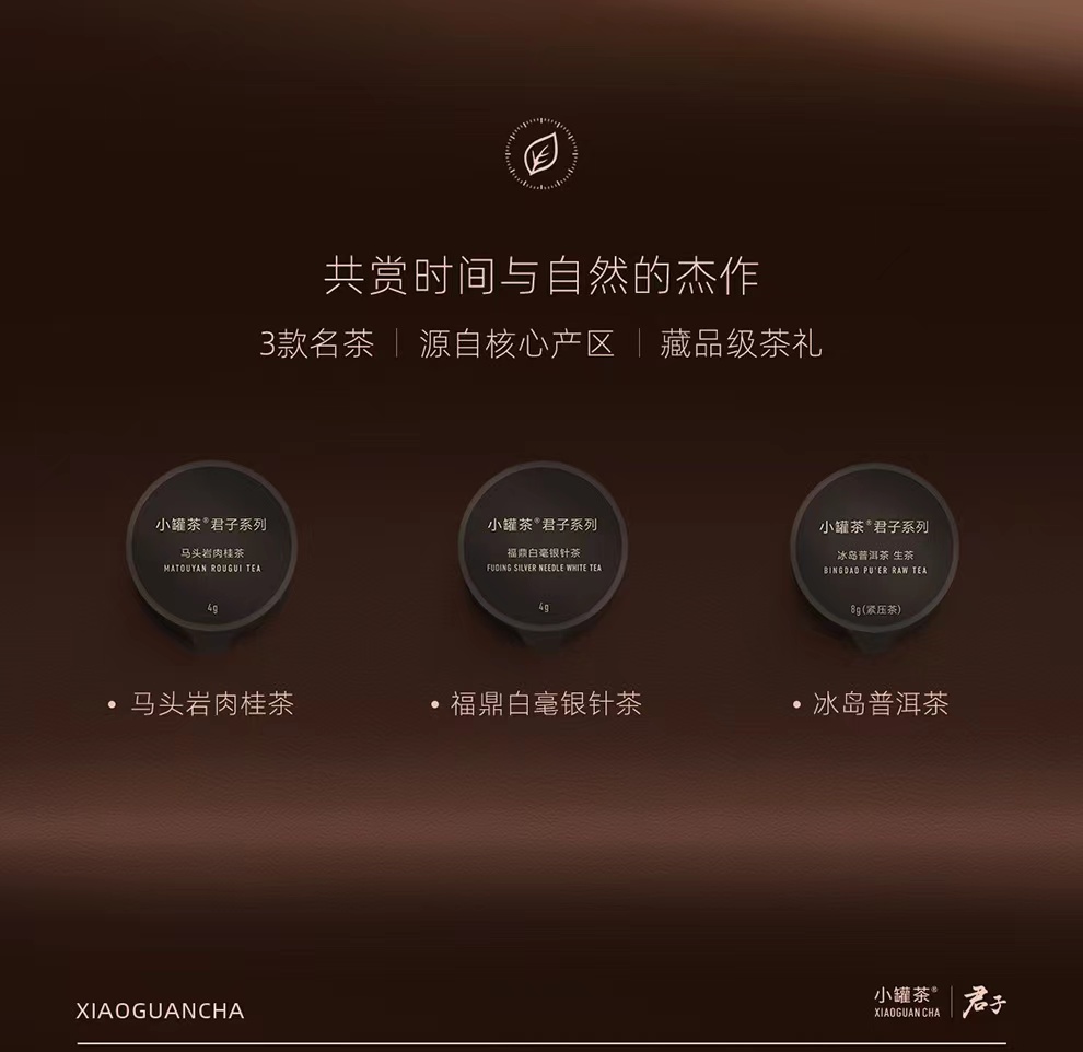 【商务送礼】小罐茶君子系列冰岛普洱马头岩肉桂福鼎白茶叶礼盒装112g