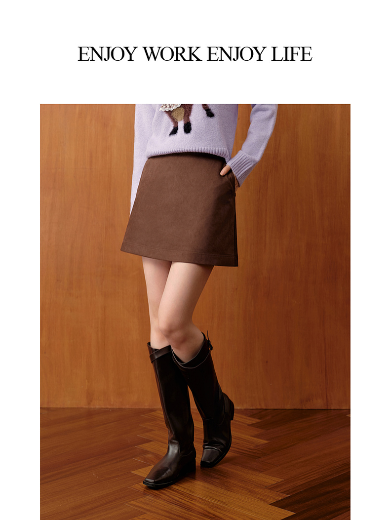 【严选】孟子义代言诗凡黎麂皮绒咖色半身裙2025秋冬新款复古质感包臀短裙7GA341121