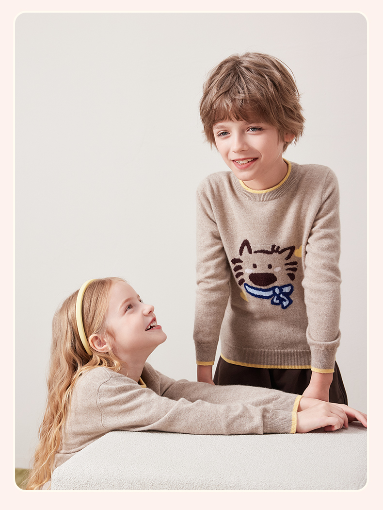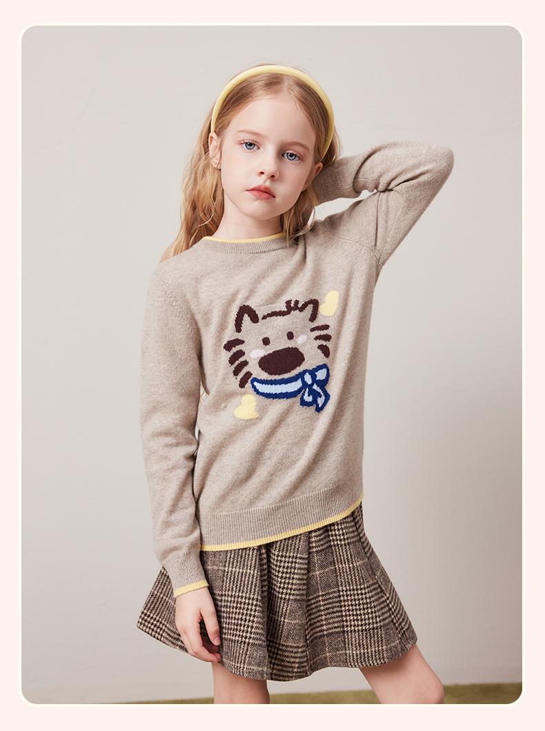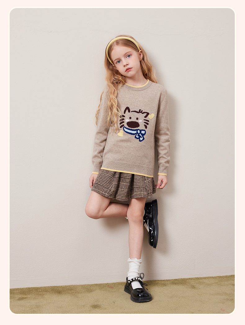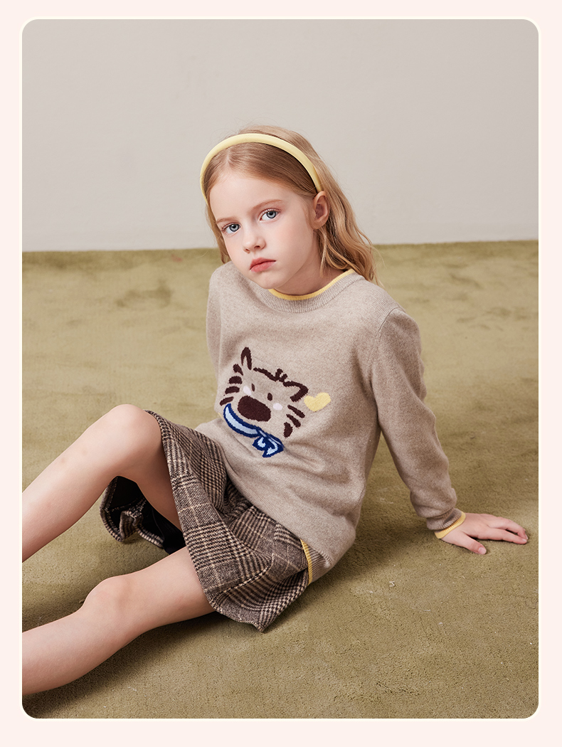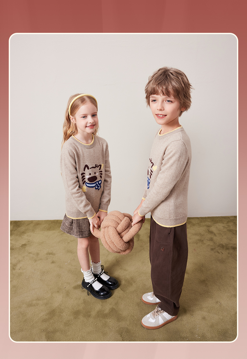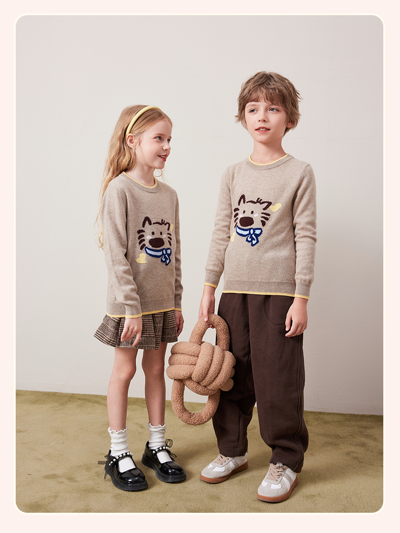 mettekids儿童100%羊绒衫2024秋冬新款女童可爱套头针织男童毛衣
