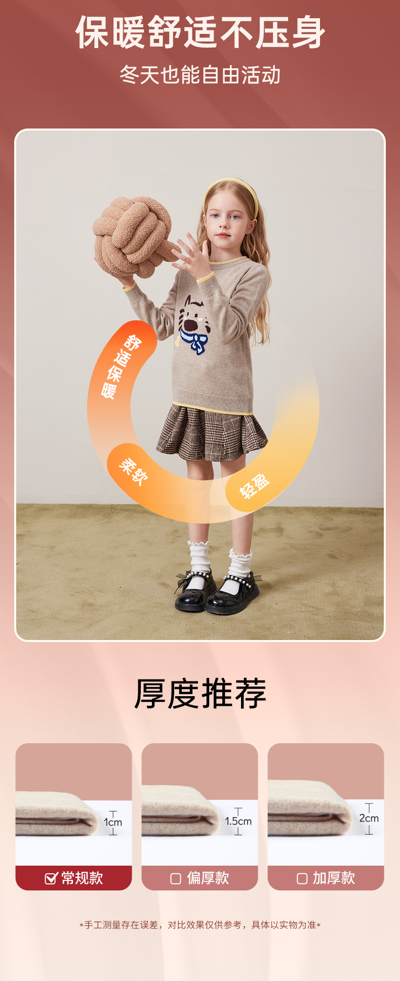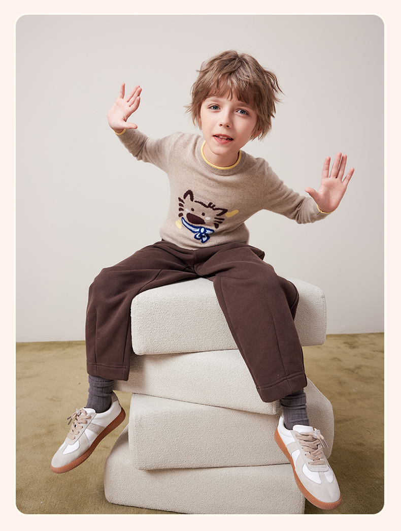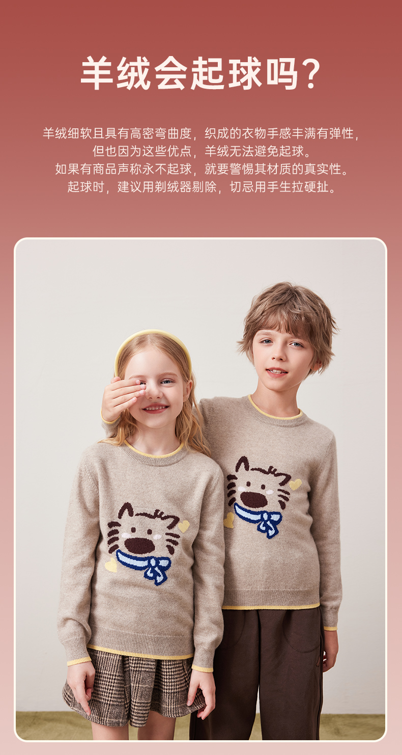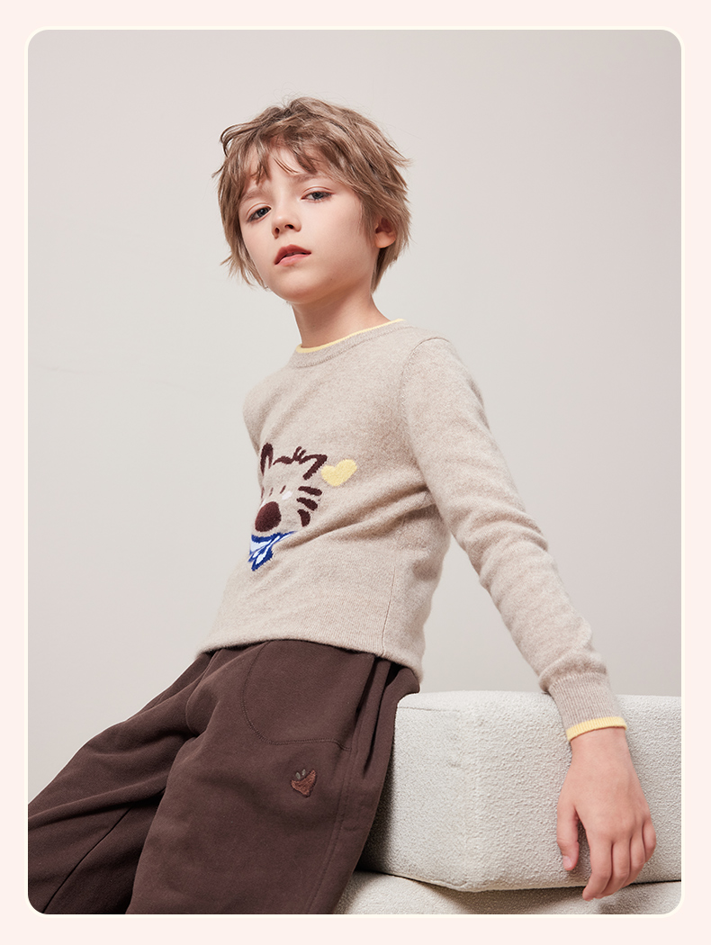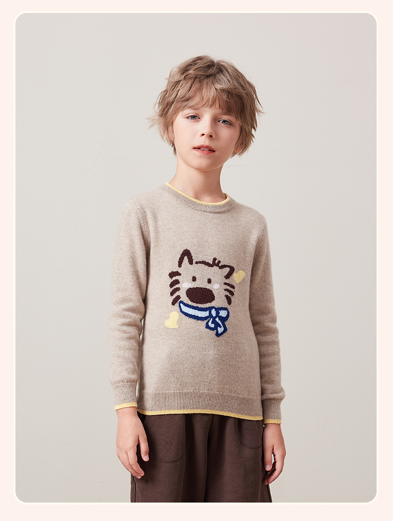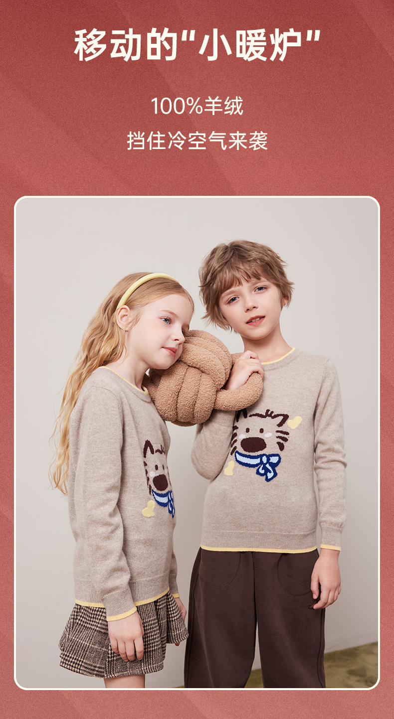 mettekids儿童100%羊绒衫2024秋冬新款女童可爱套头针织男童毛衣