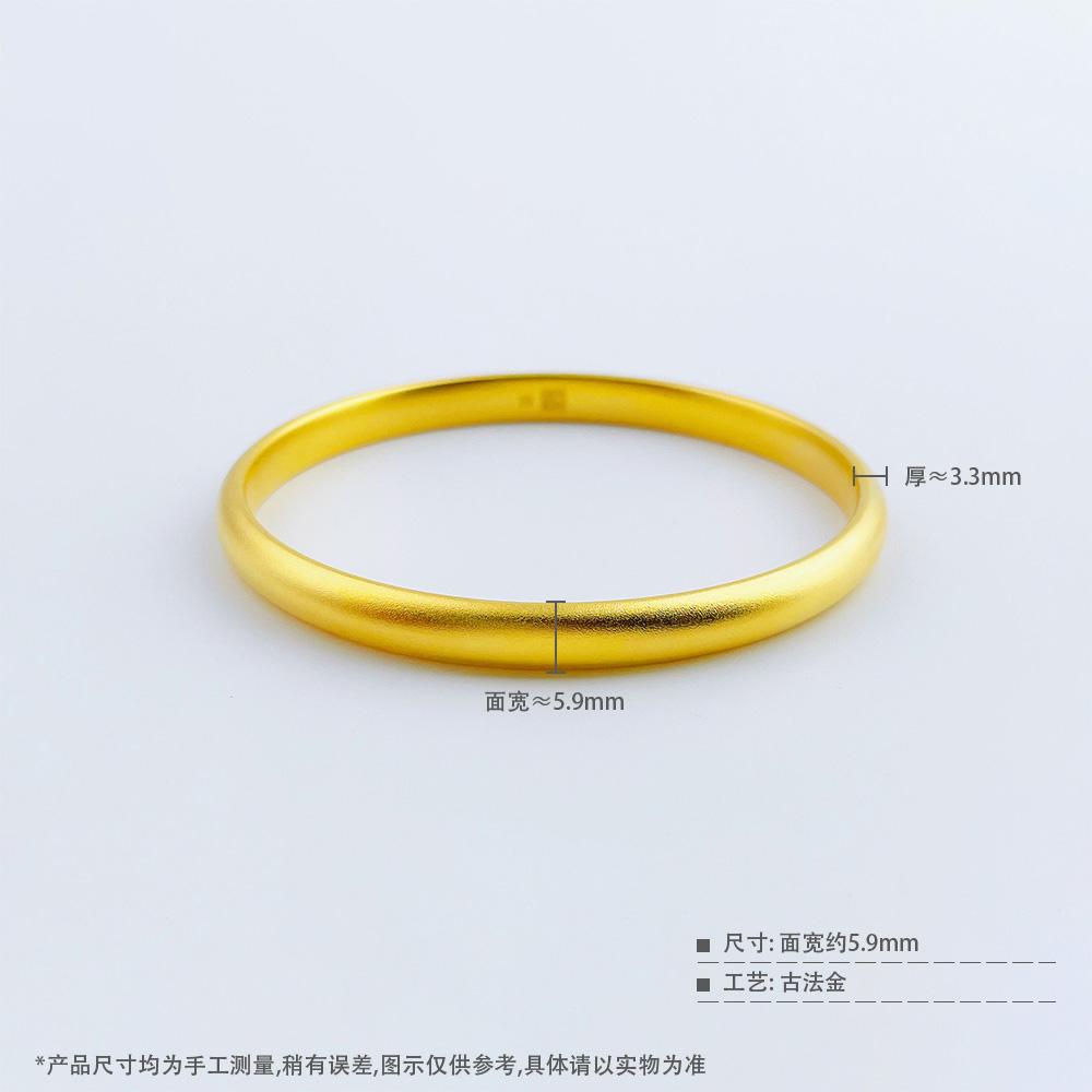 【限时克减150元】足金999 #超轻 古法空心固口手镯超轻加硬福字泥鳅背手镯(面宽约5.7-6.1mm)(AUQGFSZ00067-3)(预售产品下单后不退款不退货不换货不补差价