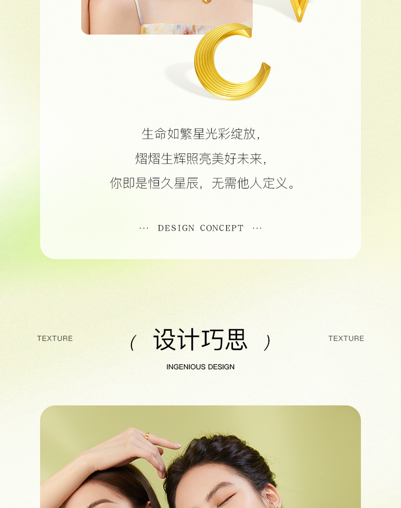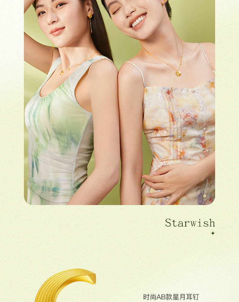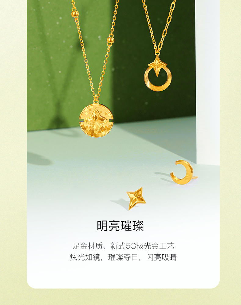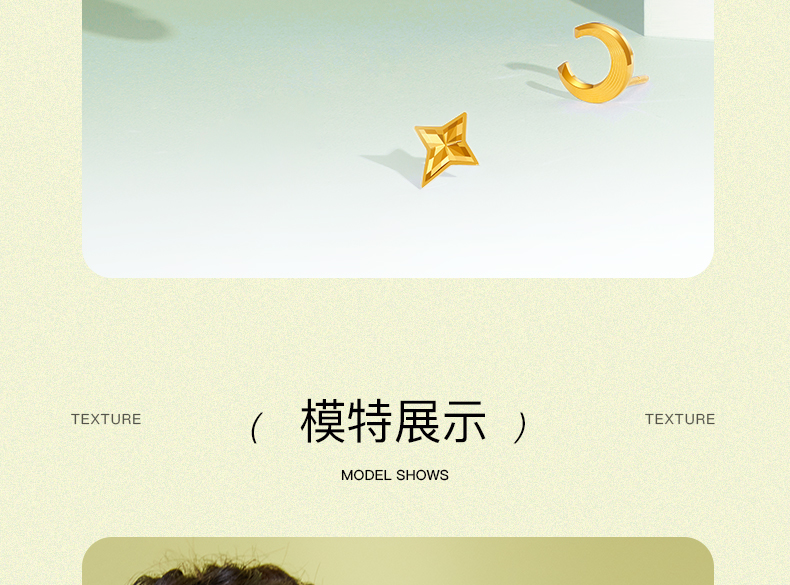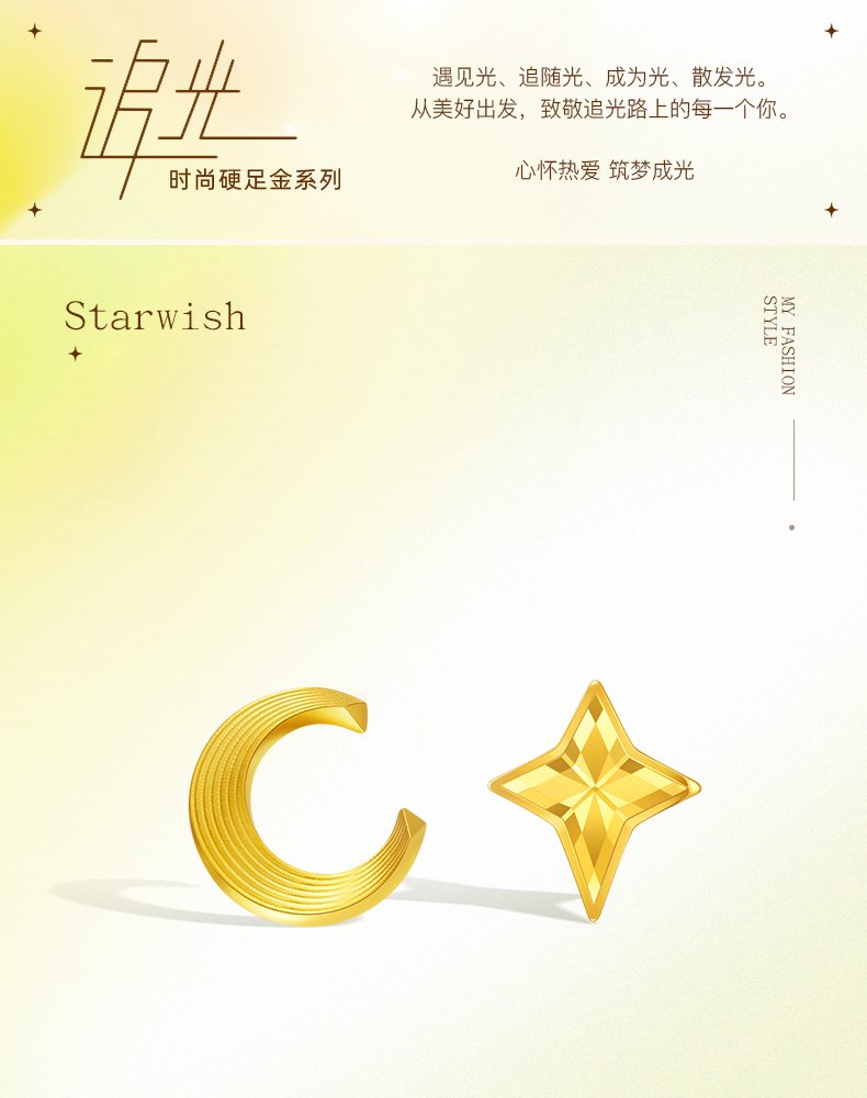 「追光」星愿黄金星月耳钉耳饰