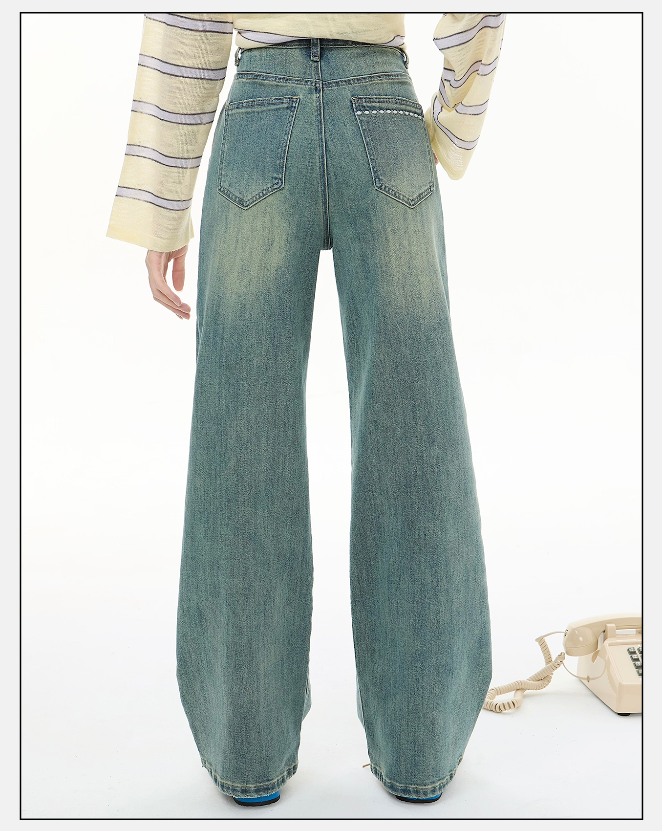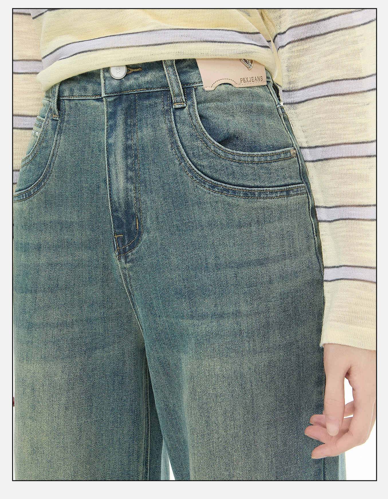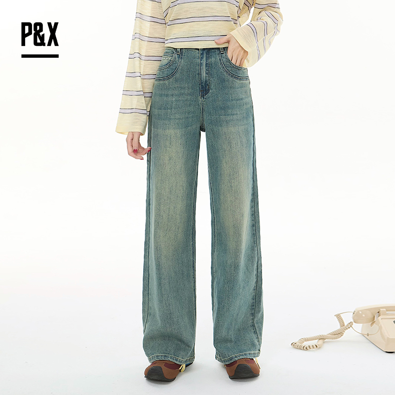 P&X设计师女装2025秋季梨型裤子阔腿裤牛仔长裤825310262 蓝色