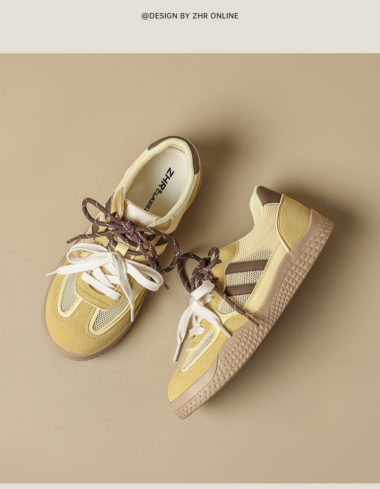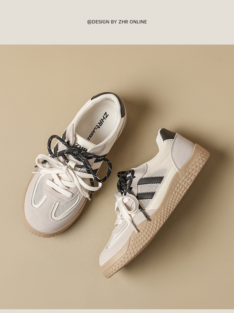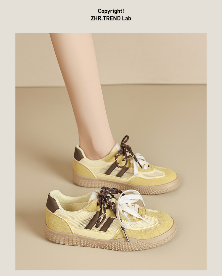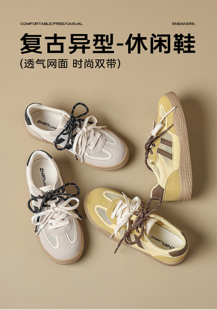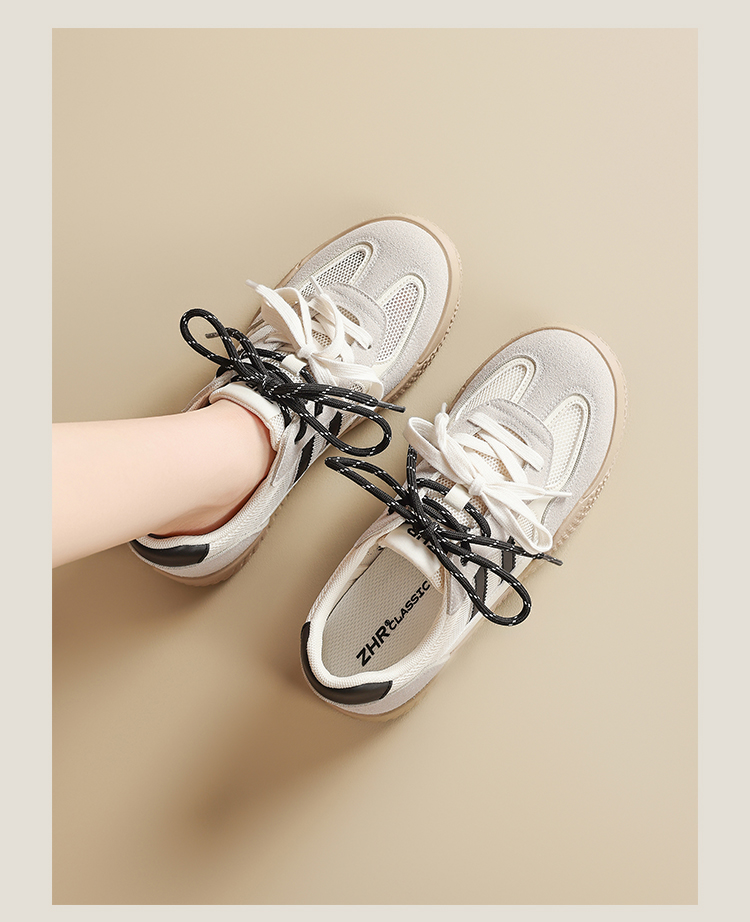 ZHR网面德训鞋女2025夏季新款多巴胺拼色透气运动复古平底阿甘鞋