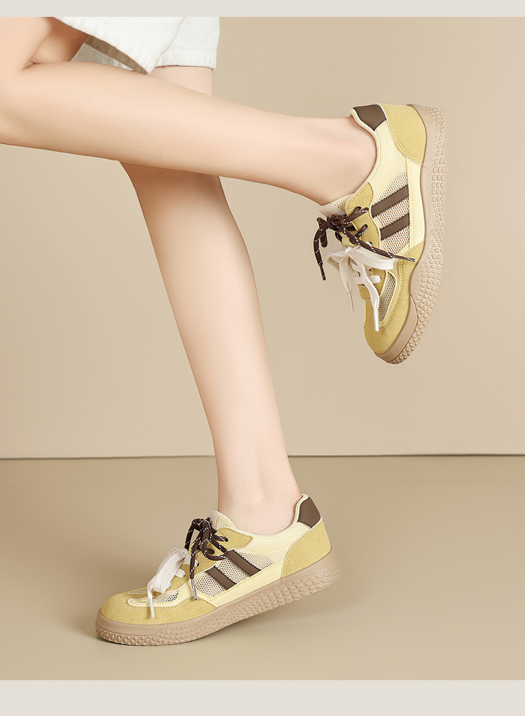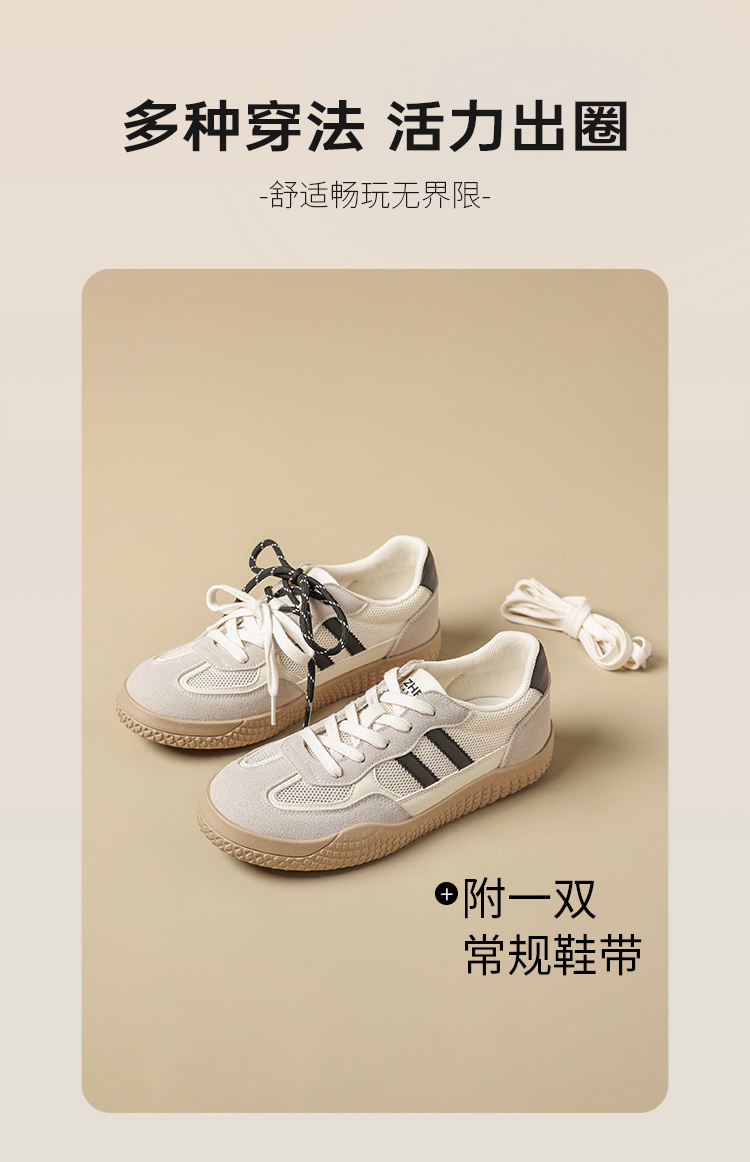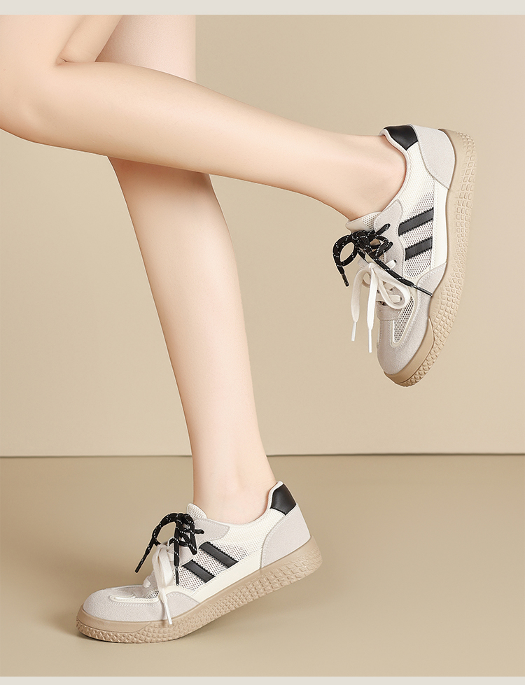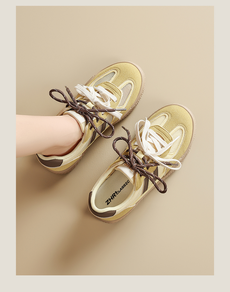 ZHR网面德训鞋女2025夏季新款多巴胺拼色透气运动复古平底阿甘鞋