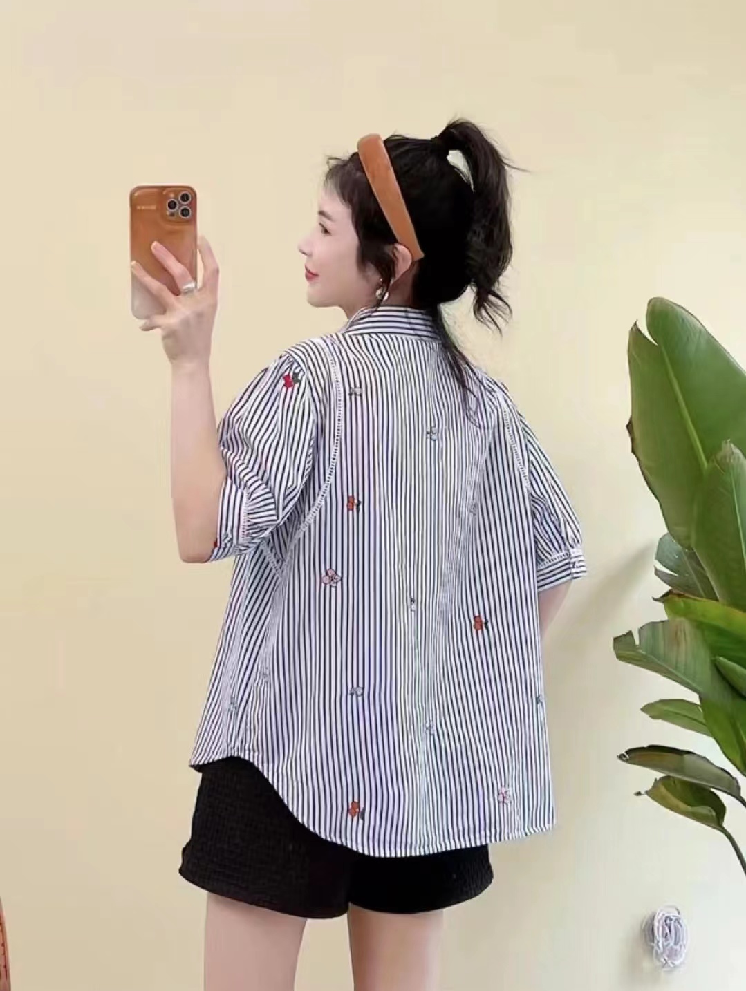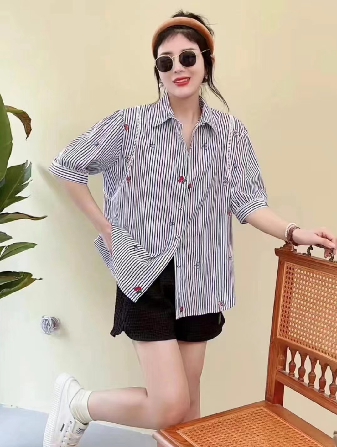2659 # 白 蓝 均码 衬衫加樱桃刺绣 简直不要太可爱