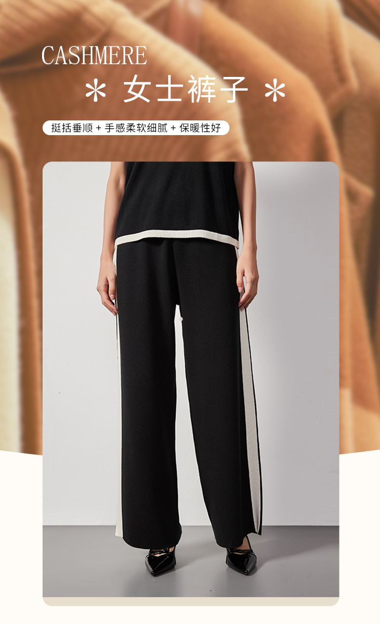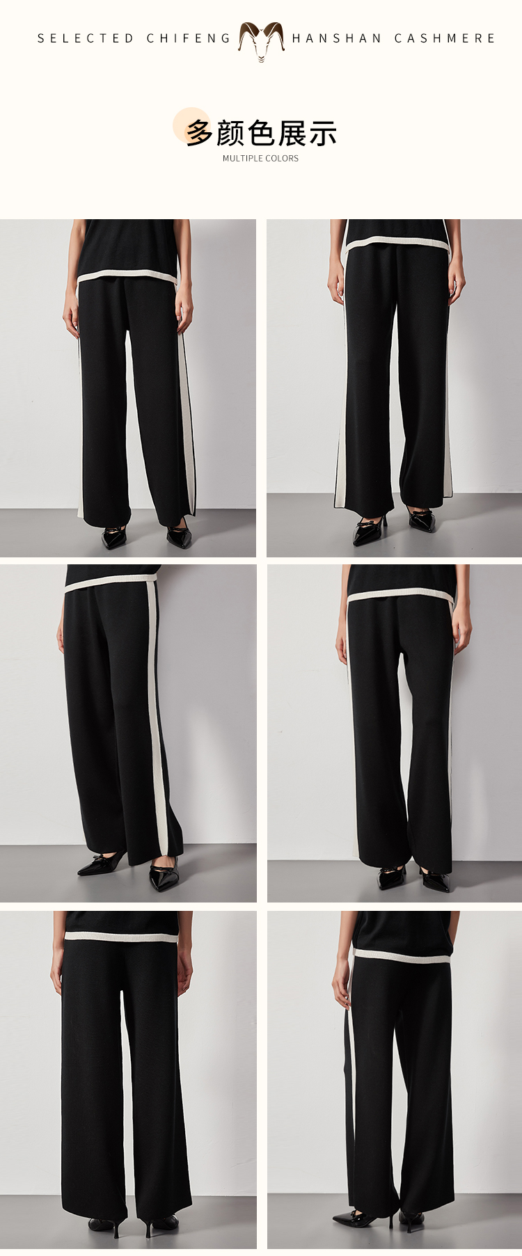 东黎 • 丝绒款女士春夏黑白显瘦直筒阔腿裤 4227