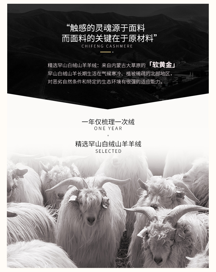 东黎羊绒是赤峰东荣集团自主品牌,自有牧场/羊绒制品全产业链优势,实现了羊绒从“牧场”到“商场”的华丽转变。
