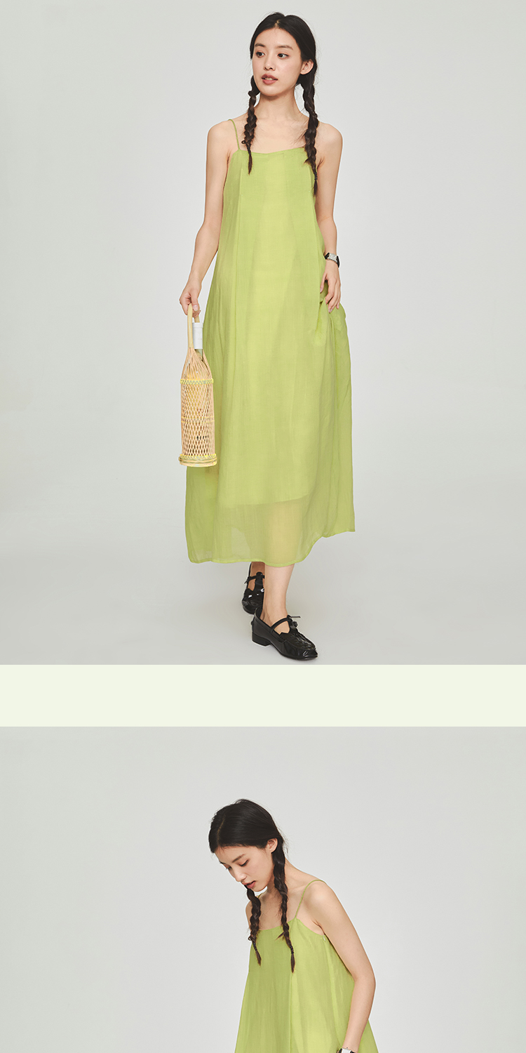 shyshystill/shy202305024/经典款质感苎麻褶皱清凉极简吊带连衣裙