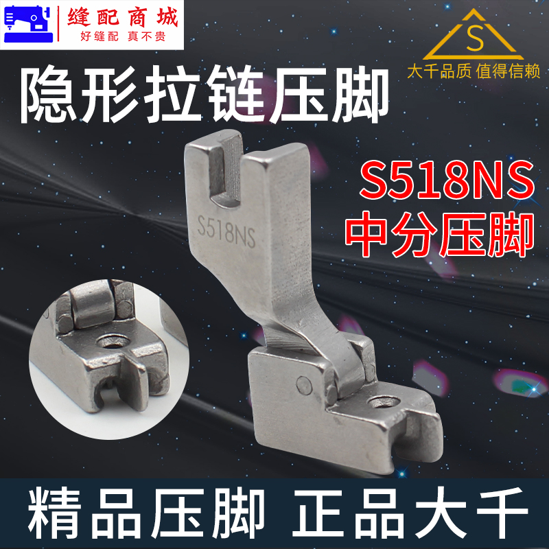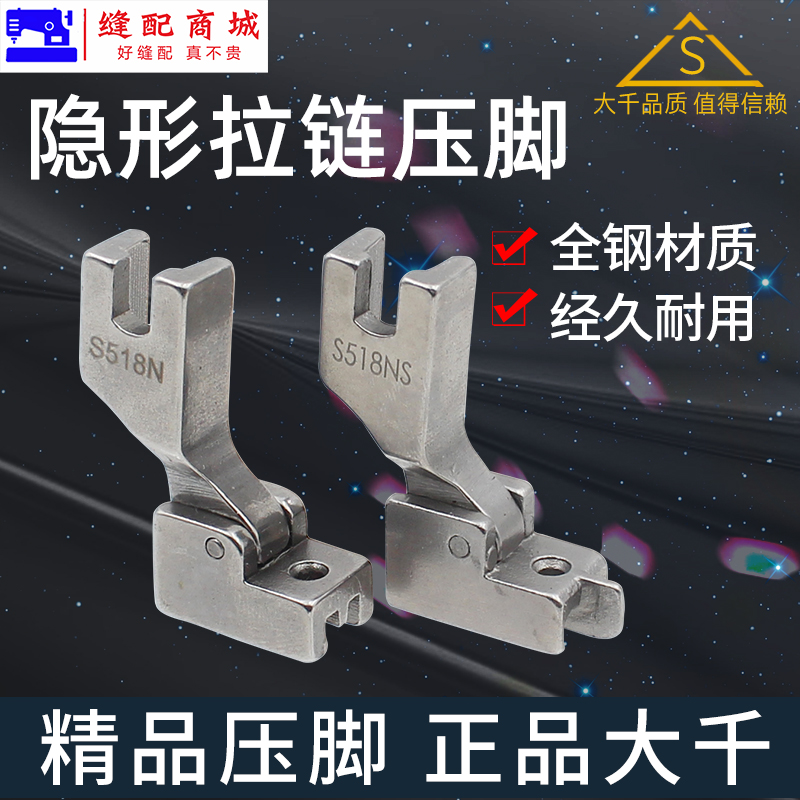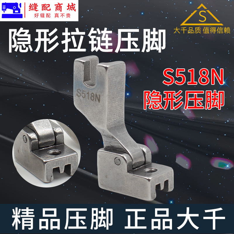 (精品压脚)隐形拉链压脚 大千全钢平车带导向平缝机上隐型拉链压脚S518N S518NS S518L 缝纫机配件