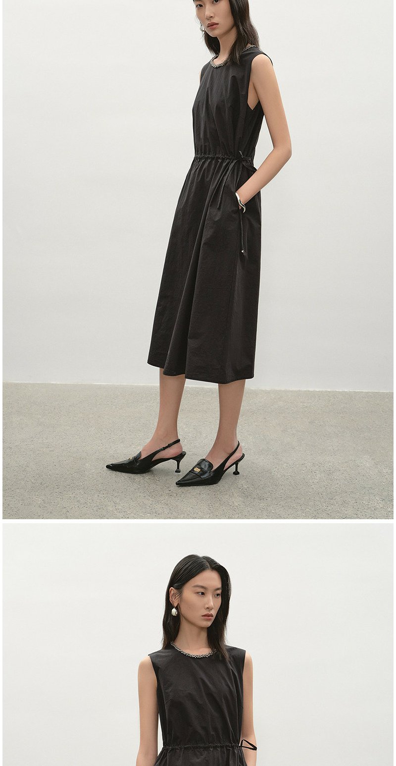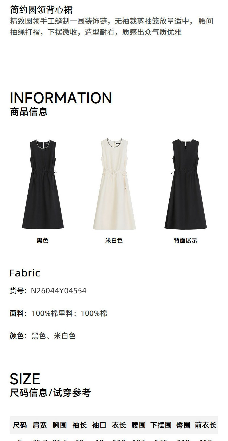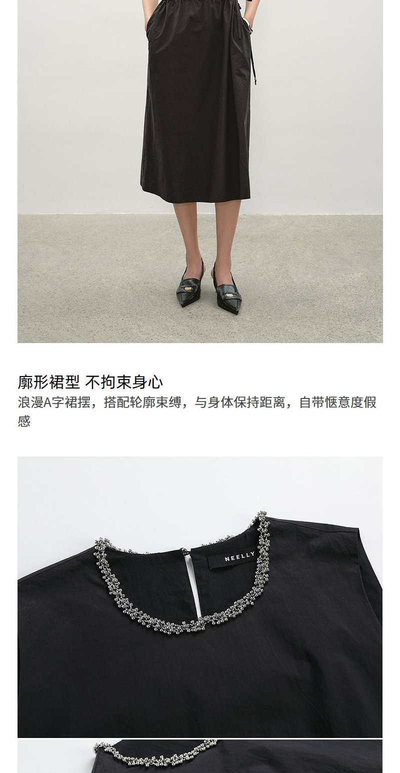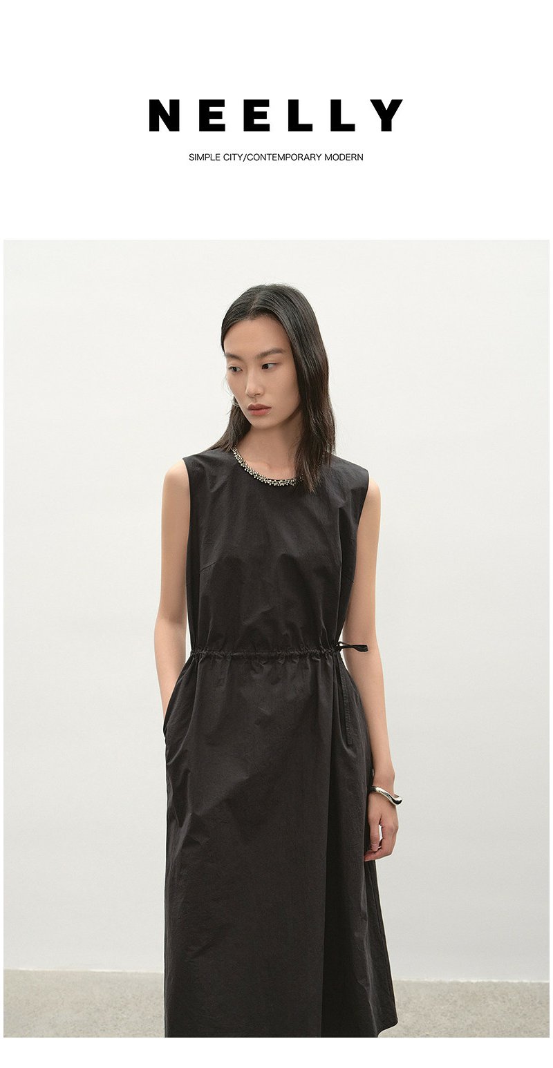 NEELLY纳俪商场同款夏新款简约圆领背心裙女气质舒适设计感连衣裙N26044Y04554