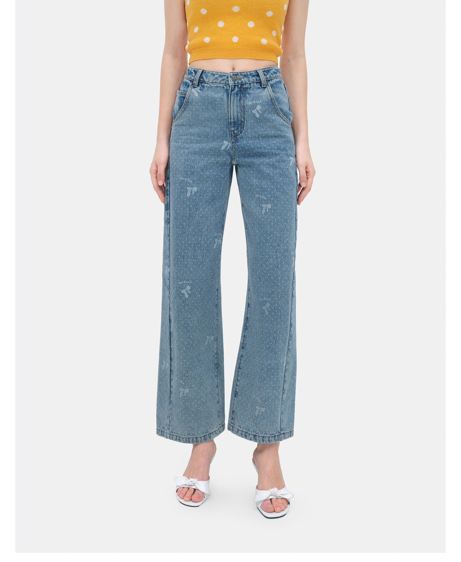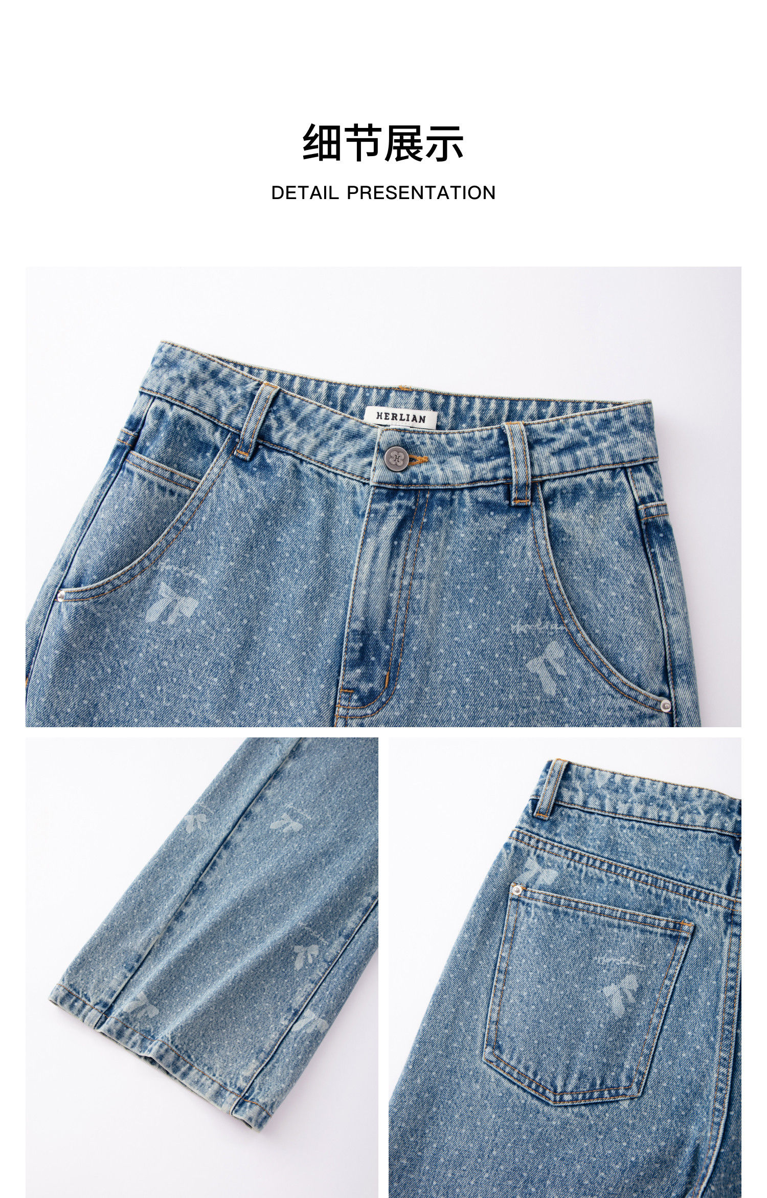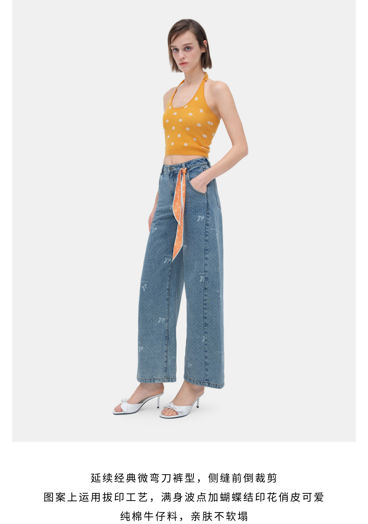 HERLIAN 2026年春季新品蝴蝶结波点印花女士弯刀裤牛仔长裤