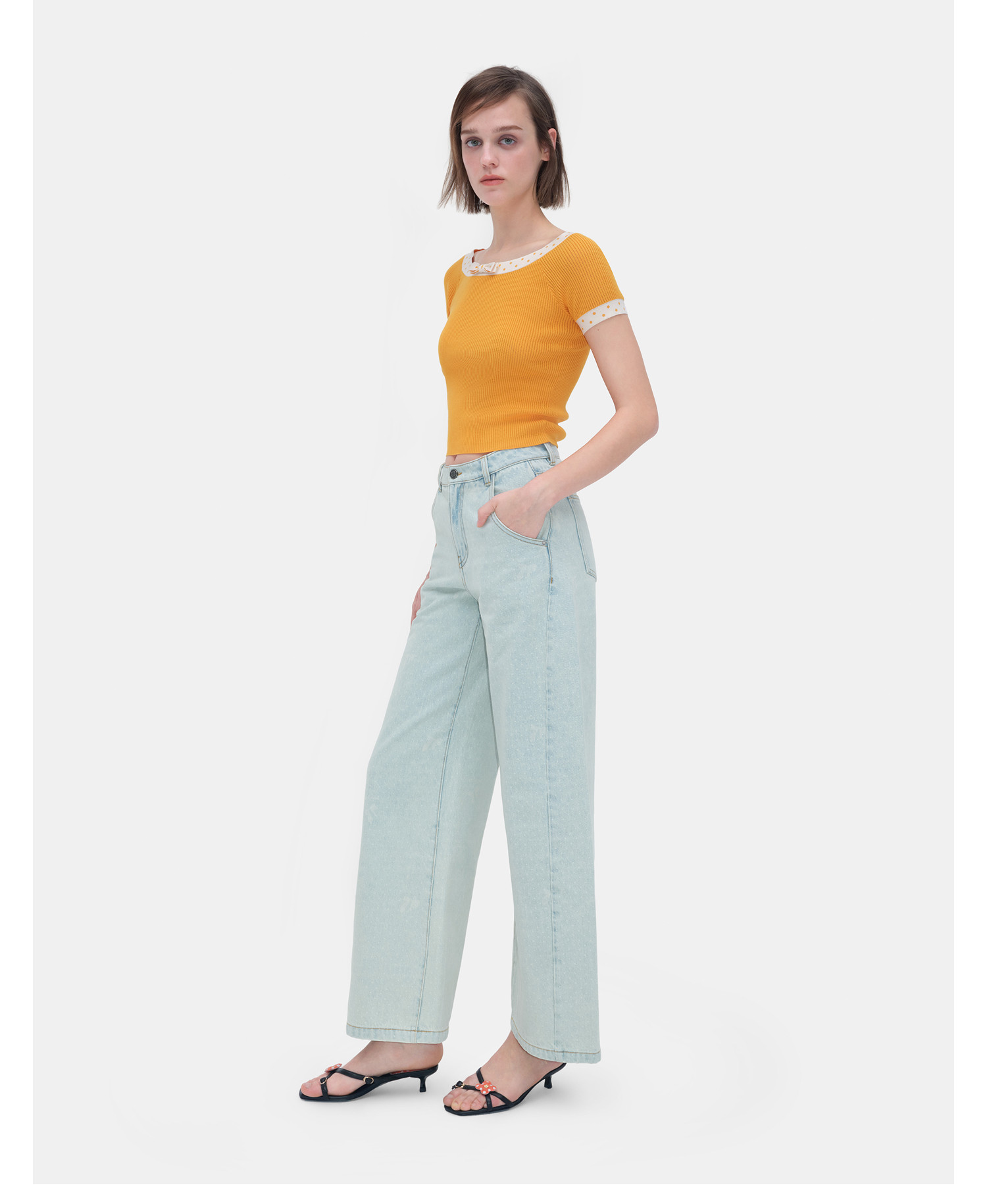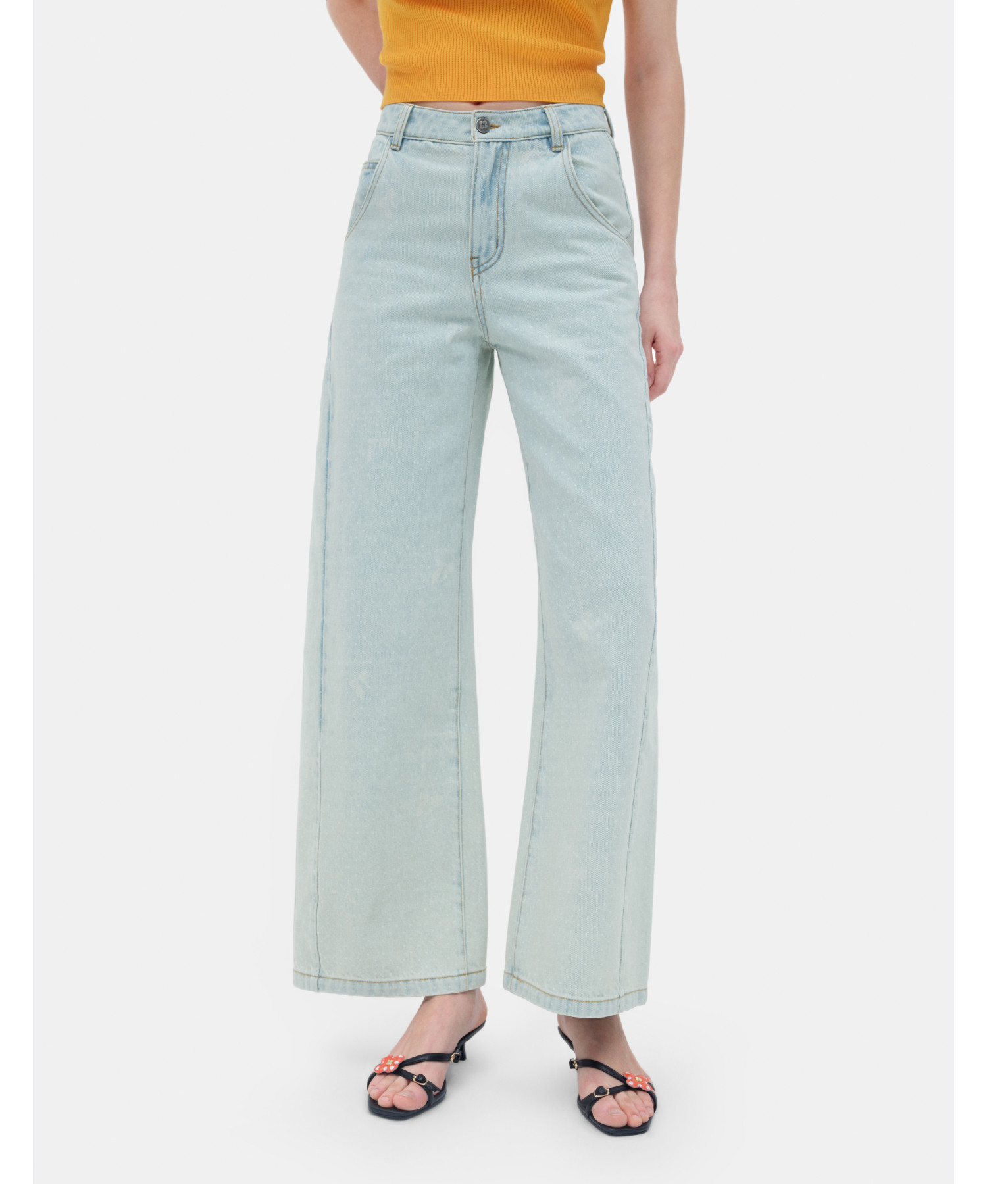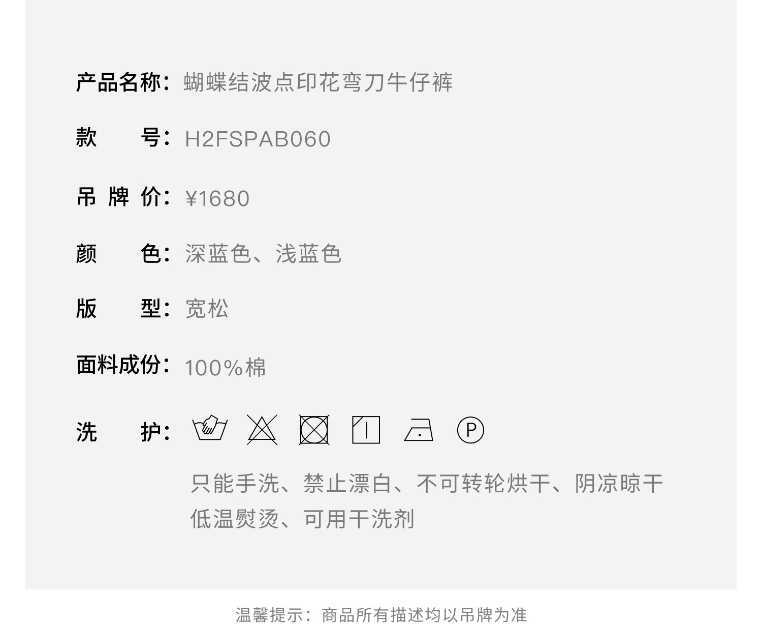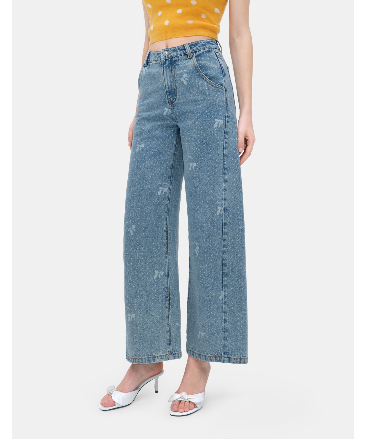 HERLIAN 2026年春季新品蝴蝶结波点印花女士弯刀裤牛仔长裤