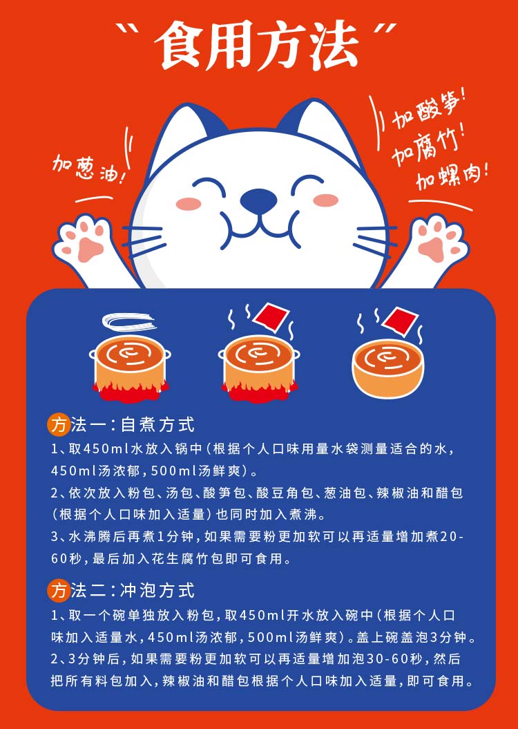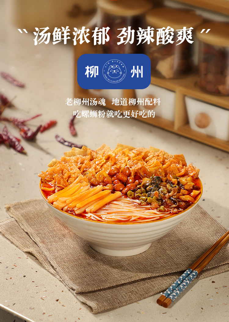 【柳小猫螺蛳粉】只煮1分钟。400克/袋,3袋或5袋/箱可选!高品质螺蛳粉,加臭加辣加料,双倍满足,双倍快乐!