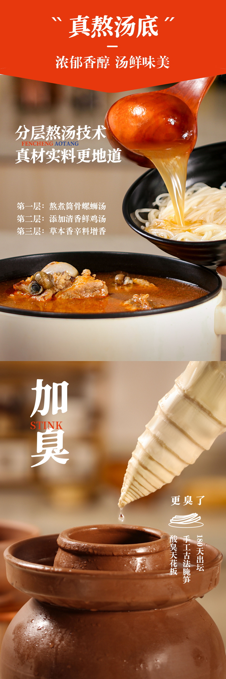 【配料】湿粉包、螺肉汤料包、加量酸笋包、腐竹包*2、花生包、什锦配料包、辣油包、葱油包、酸醋包。