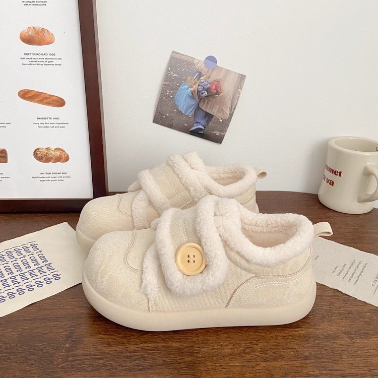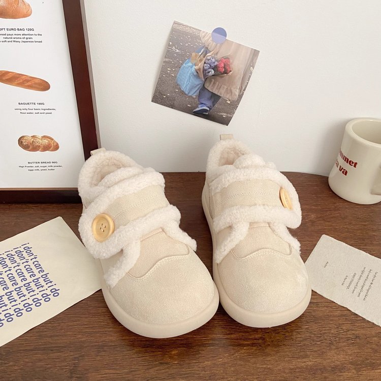 【加绒魔术贴板鞋59/双】女2025冬季新款chic小众毛毛棉鞋运动小白鞋子聚★