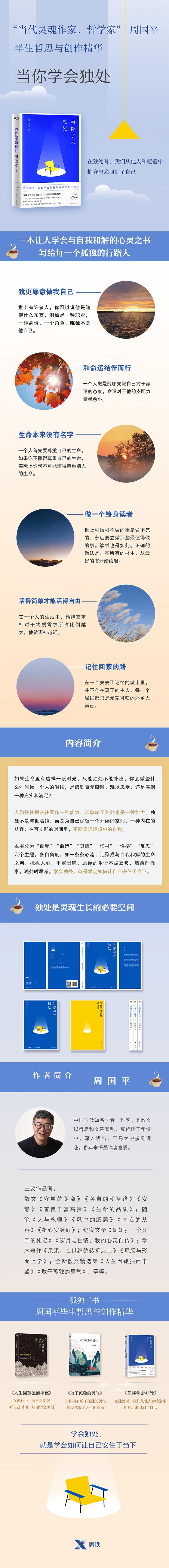 如果生命里有这样一段时光,只能独处不能外出,你会做些什么?当你一个人的时候,是感到百无聊赖,难以忍受,还是感到一种充实和满足?人们往往把交往看作一种能力,却忽略了独处也是一种能力。独处不是与世隔绝,而是为自己保留一个开阔的空间,一种内在的从容,在可支配的时间里,不断靠近理想中的自我。本书分为“自我”“命运”“灵魂”“读书”“性格”“反思”六个主题,各自角度,如一条条心流,汇聚成与自我和解的生命之河,抚慰人心,丰富灵魂,愿你的生命不被辜负,清醒时做事,独处时思考。学会独处,就是学会如何让自己安住于当下。