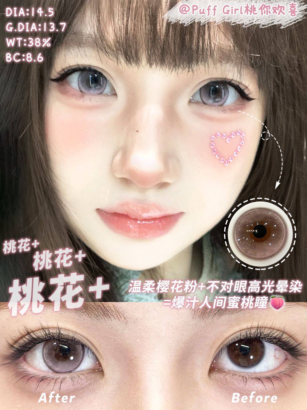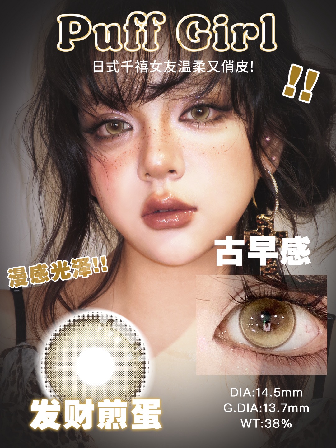 puffgirl半年抛 发财煎蛋 棕/桃你欢喜 粉/牛乳奶泡 灰 14.5mm
