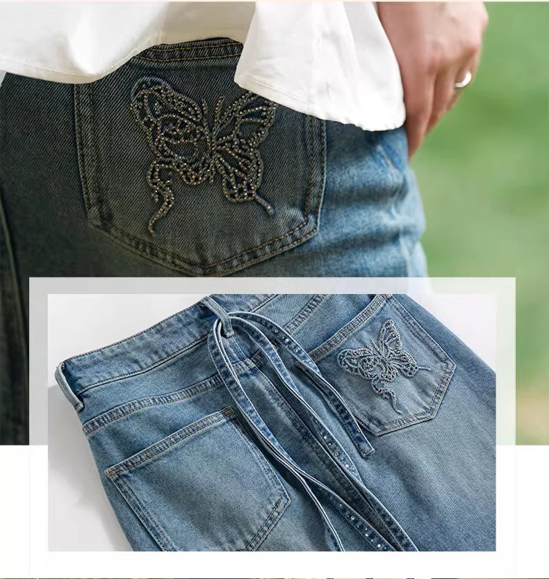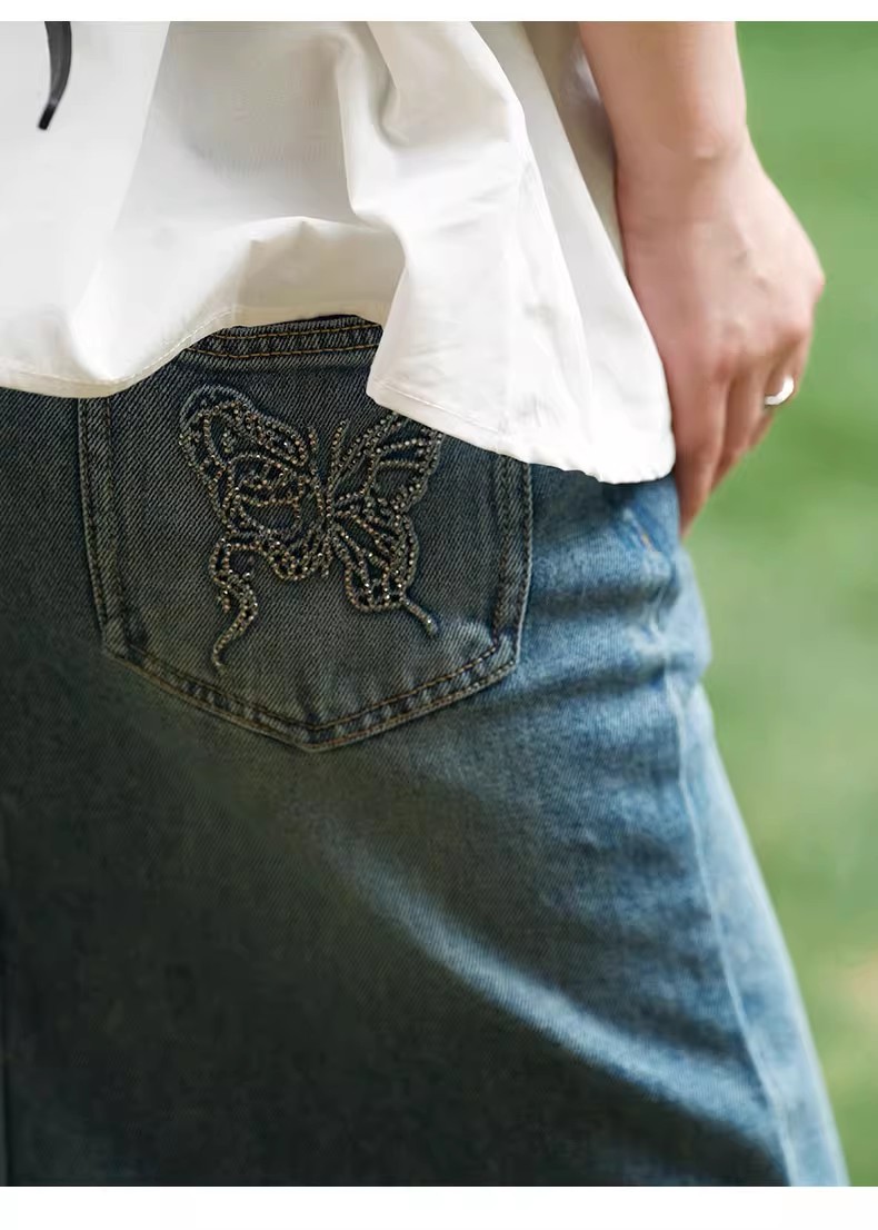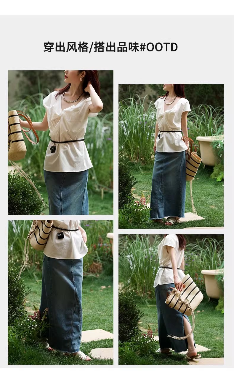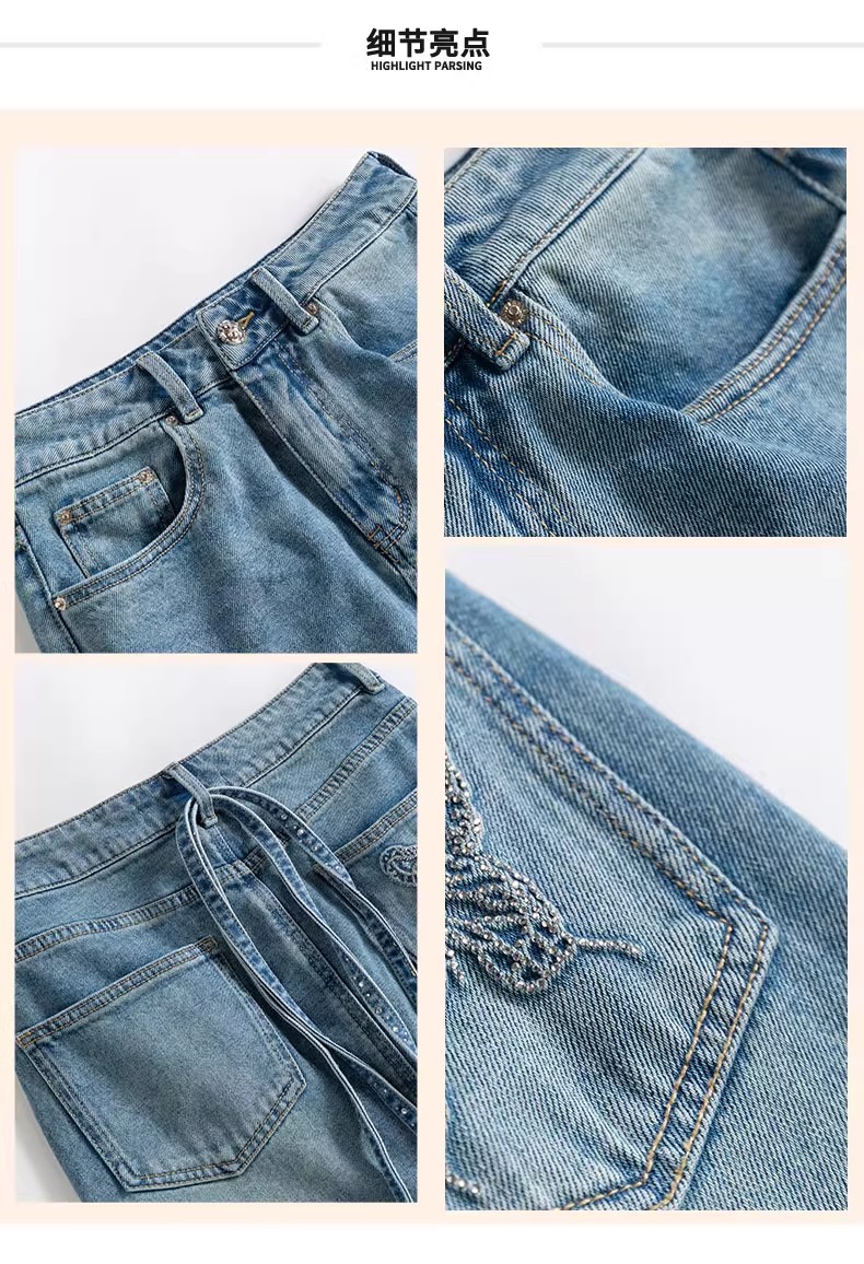 【门店同款】ENJOY夏季玫瑰亮钻腰绳牛仔裙 162263882