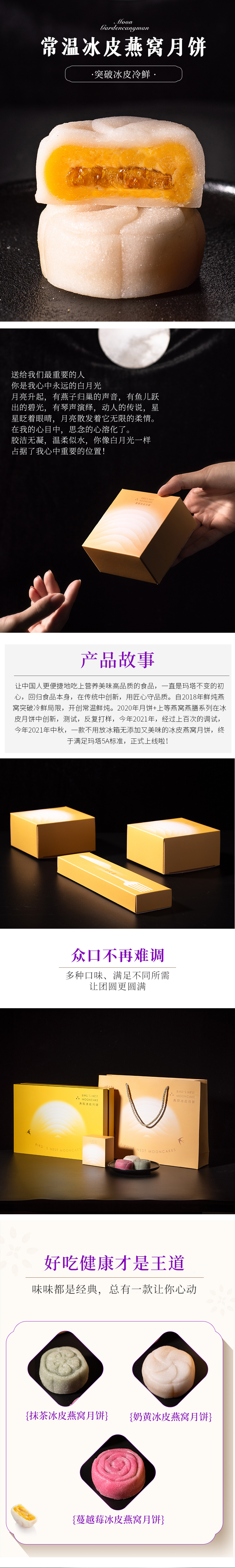 白月光常温冰皮燕窝月饼礼盒 6个/盒