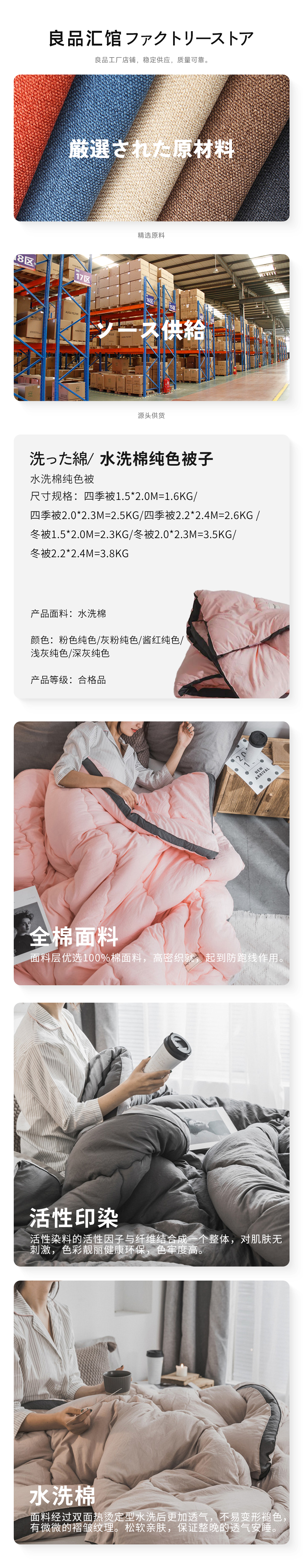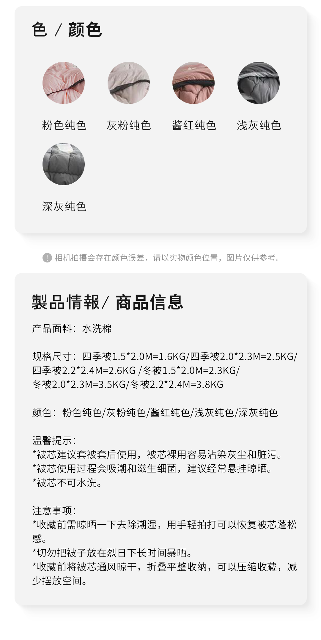【水洗棉四季被】日式无印水洗棉四季被纯色冬被良品棉被双人单人被褥纯棉春秋被子