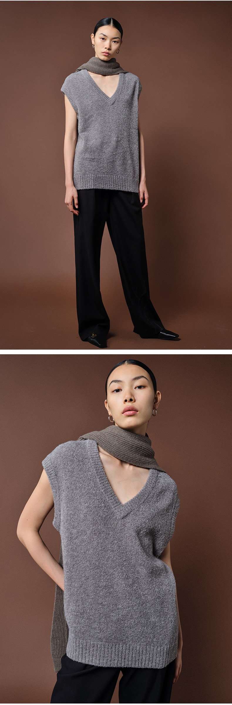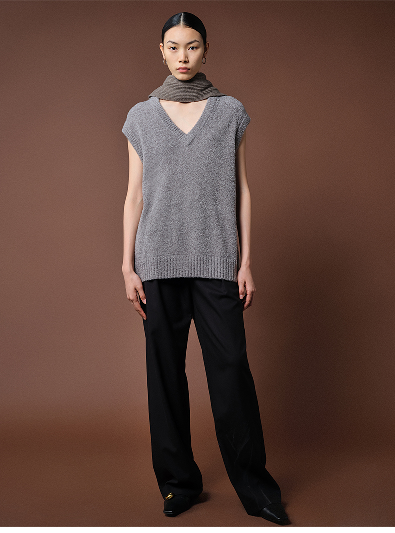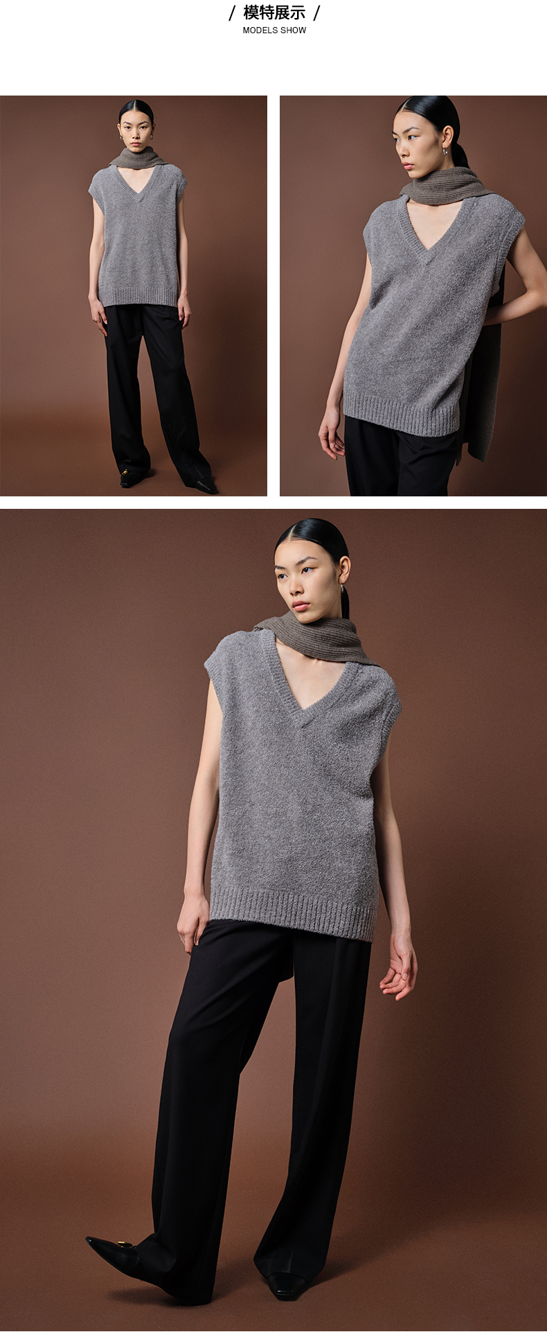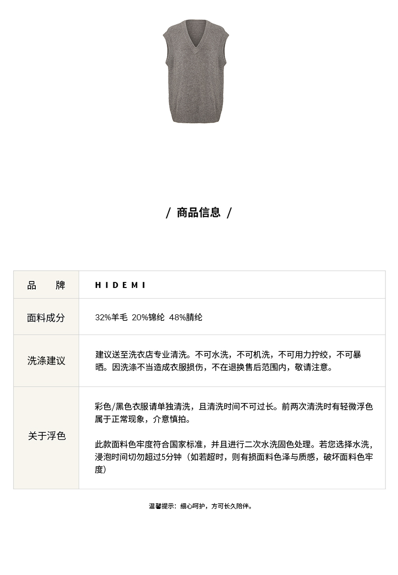 HIDEMI 美利奴羊毛系列雾灰色V领马夹