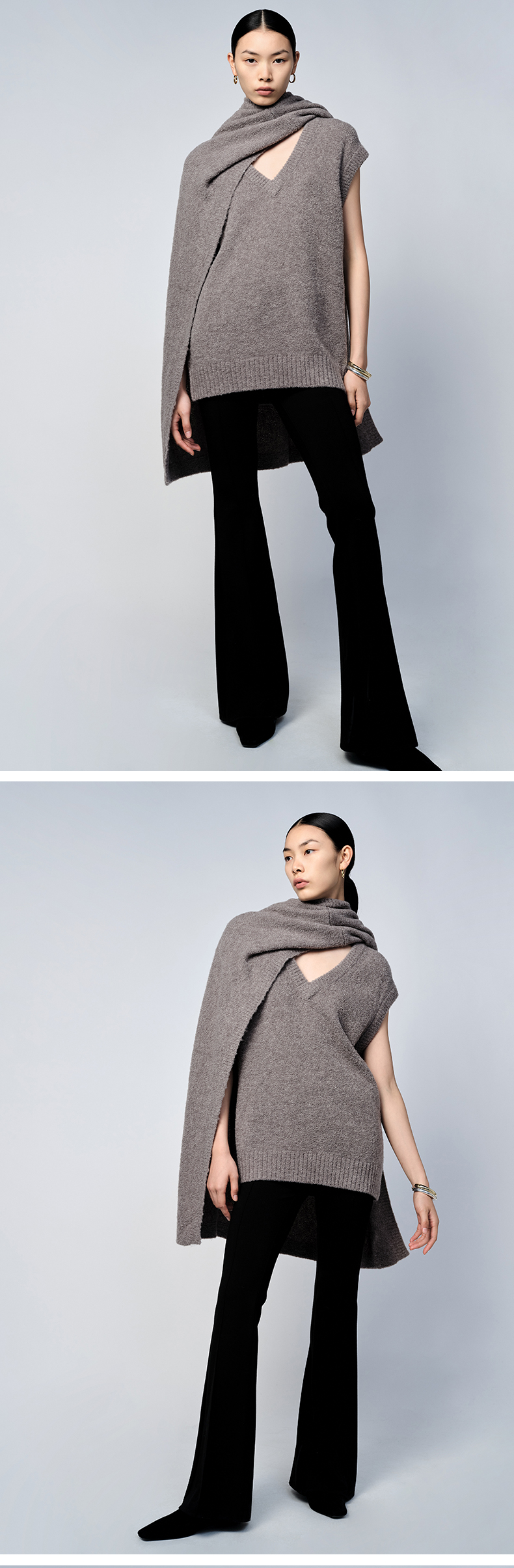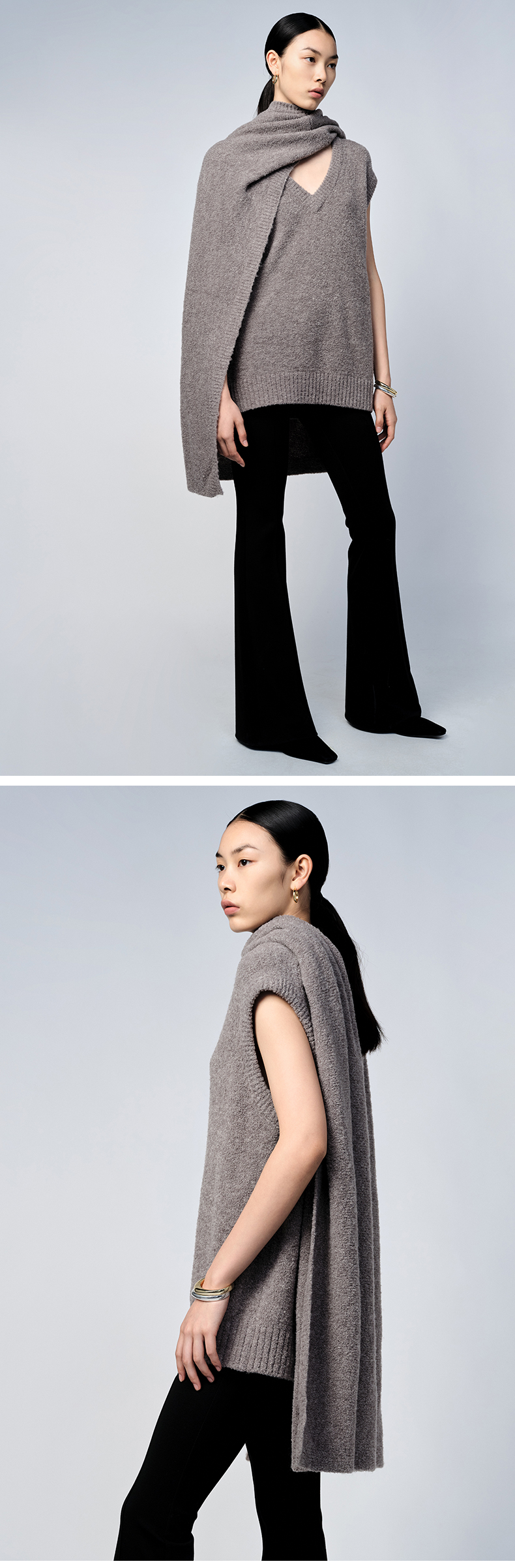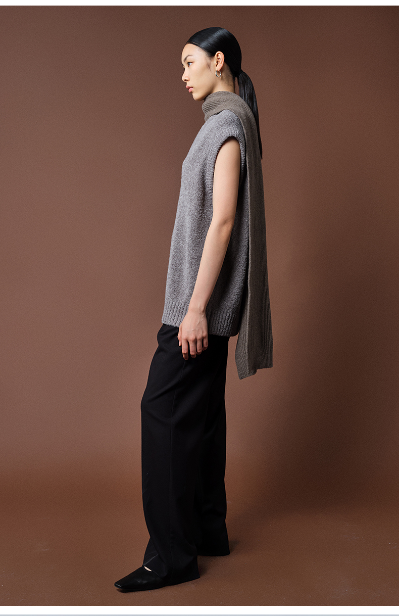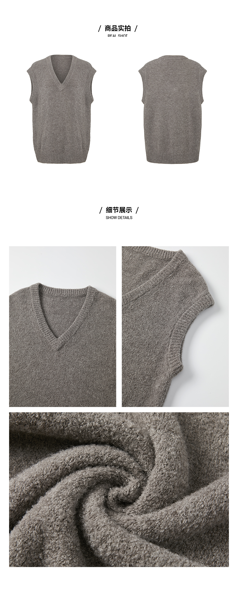 HIDEMI 美利奴羊毛系列雾灰色V领马夹