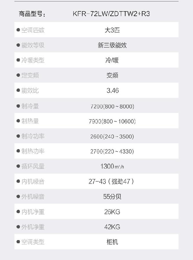 广电优选 长虹KFR-72LW/ZDTTW2+R3大3P变频三级能效 柜式空调
